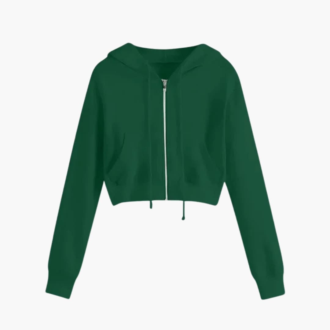 Women's Cropped Hooded Jacket with Zipper and Drawstring