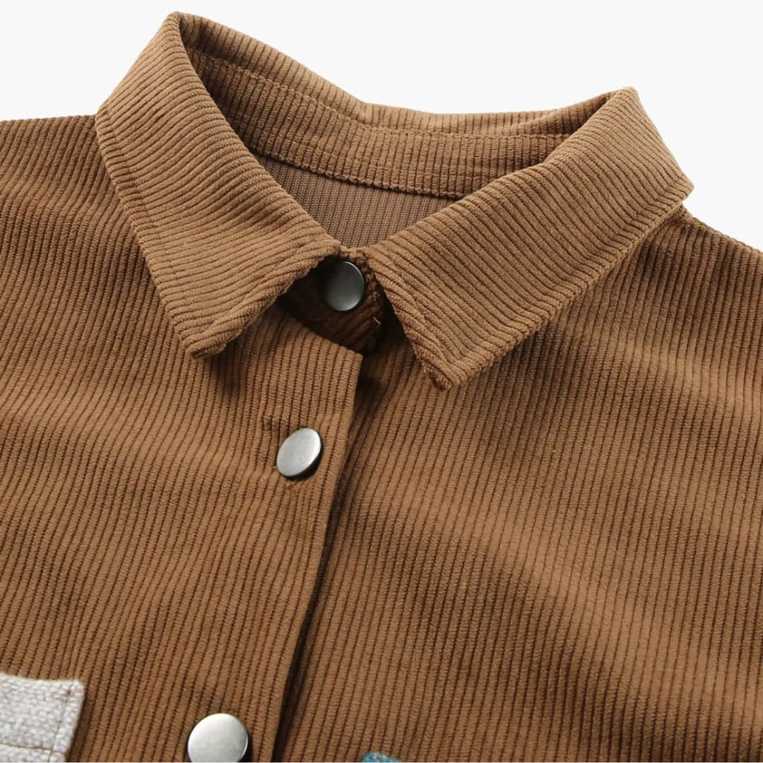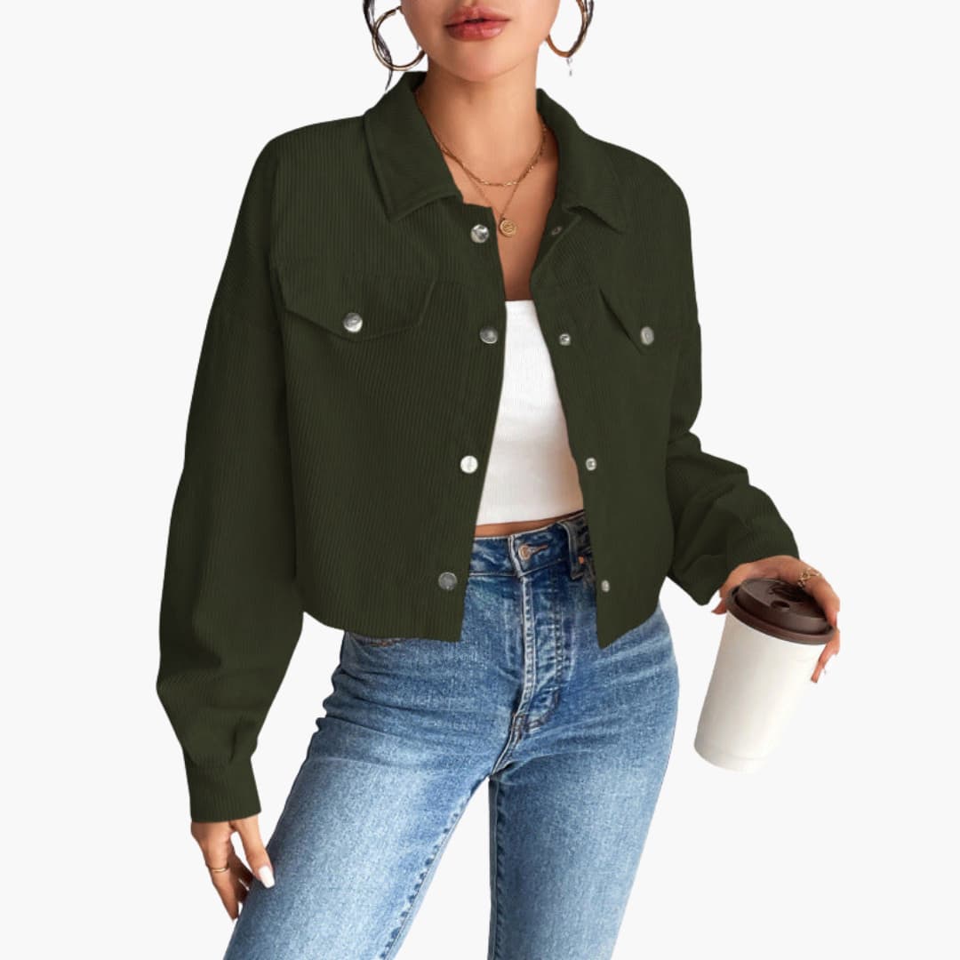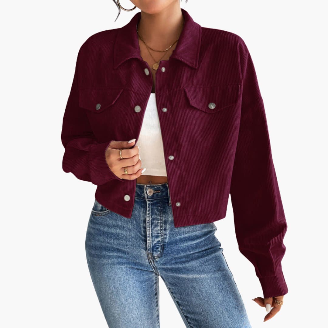 Women's Cord Jacket with Button Closure and Long Sleeves