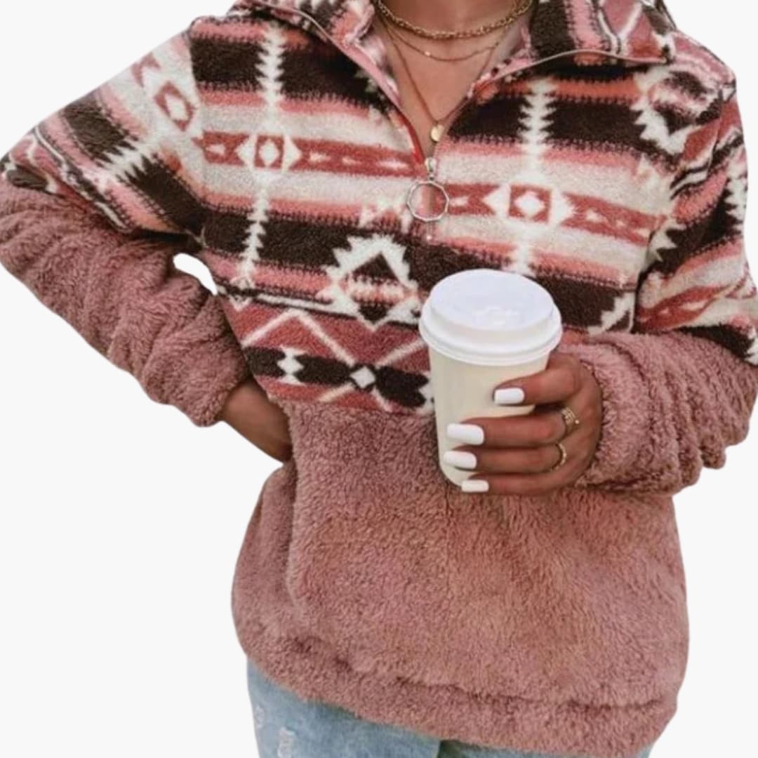 Women's Fleece Pullover with Stand-Up Collar and Pattern