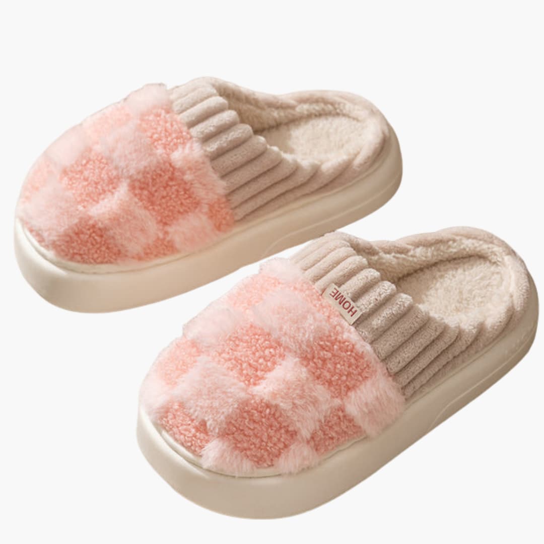 Dámské pantofle s kostkovaným povrchem a plyšovou podšívkou