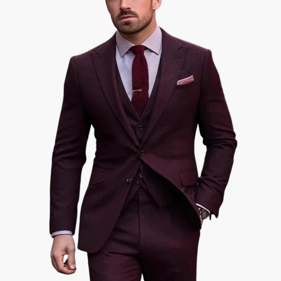 Herretre-delt jakkesæt med blazer, vest og bukser