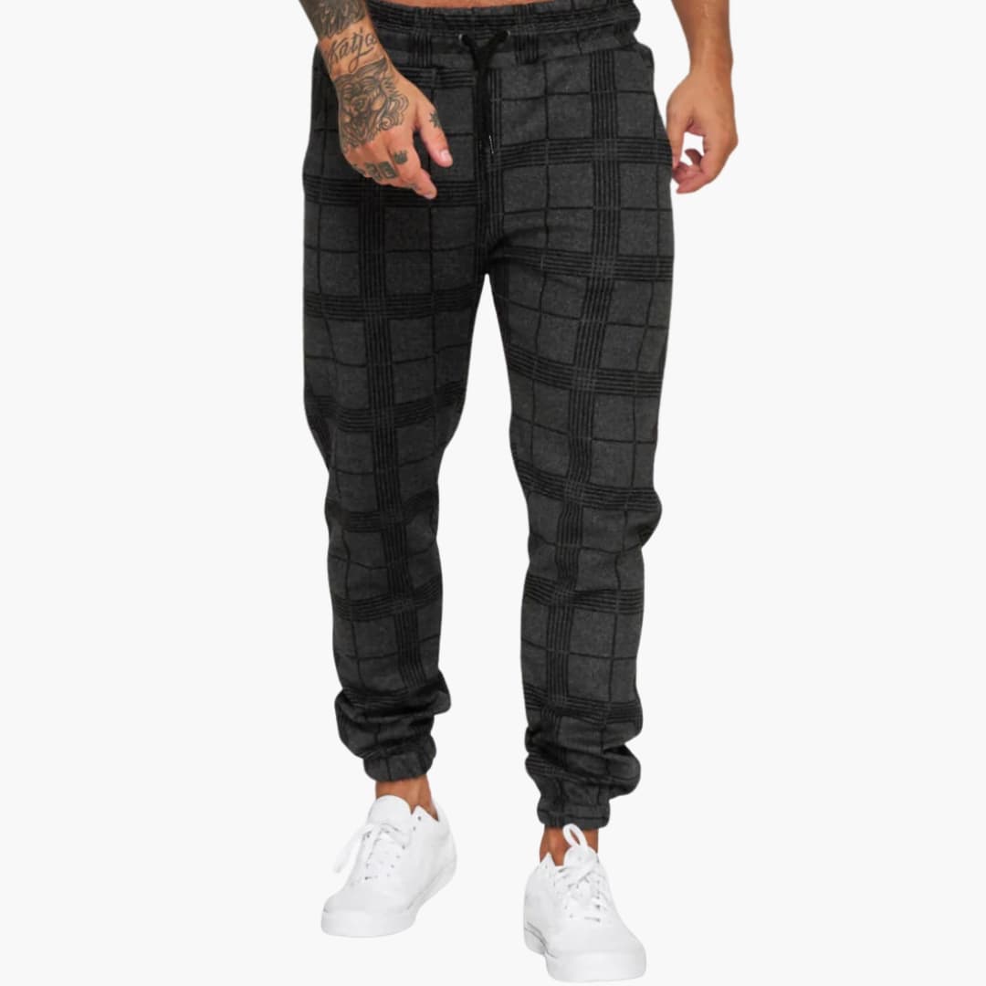 Herre joggingbukser med ternet mønster, elastisk talje og sidelommer