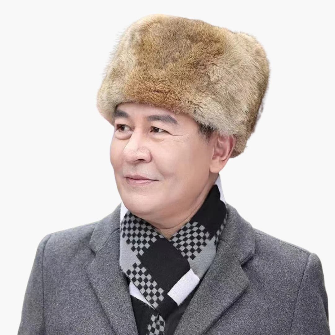 Herrehue til vinter lavet af imiteret pels med øreklapper og foret inderside