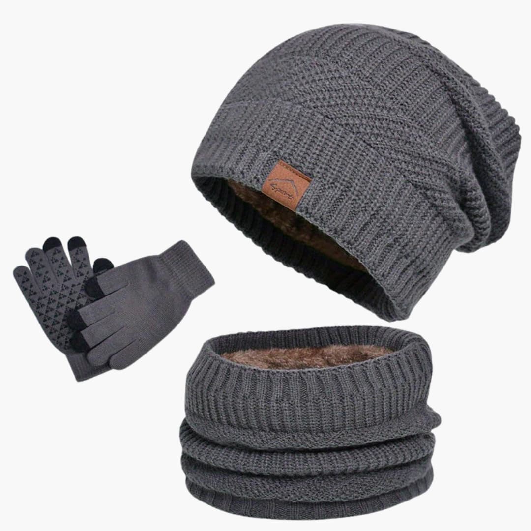 Herres vinter sæt i plyss med hat, tørklæde og handsker
