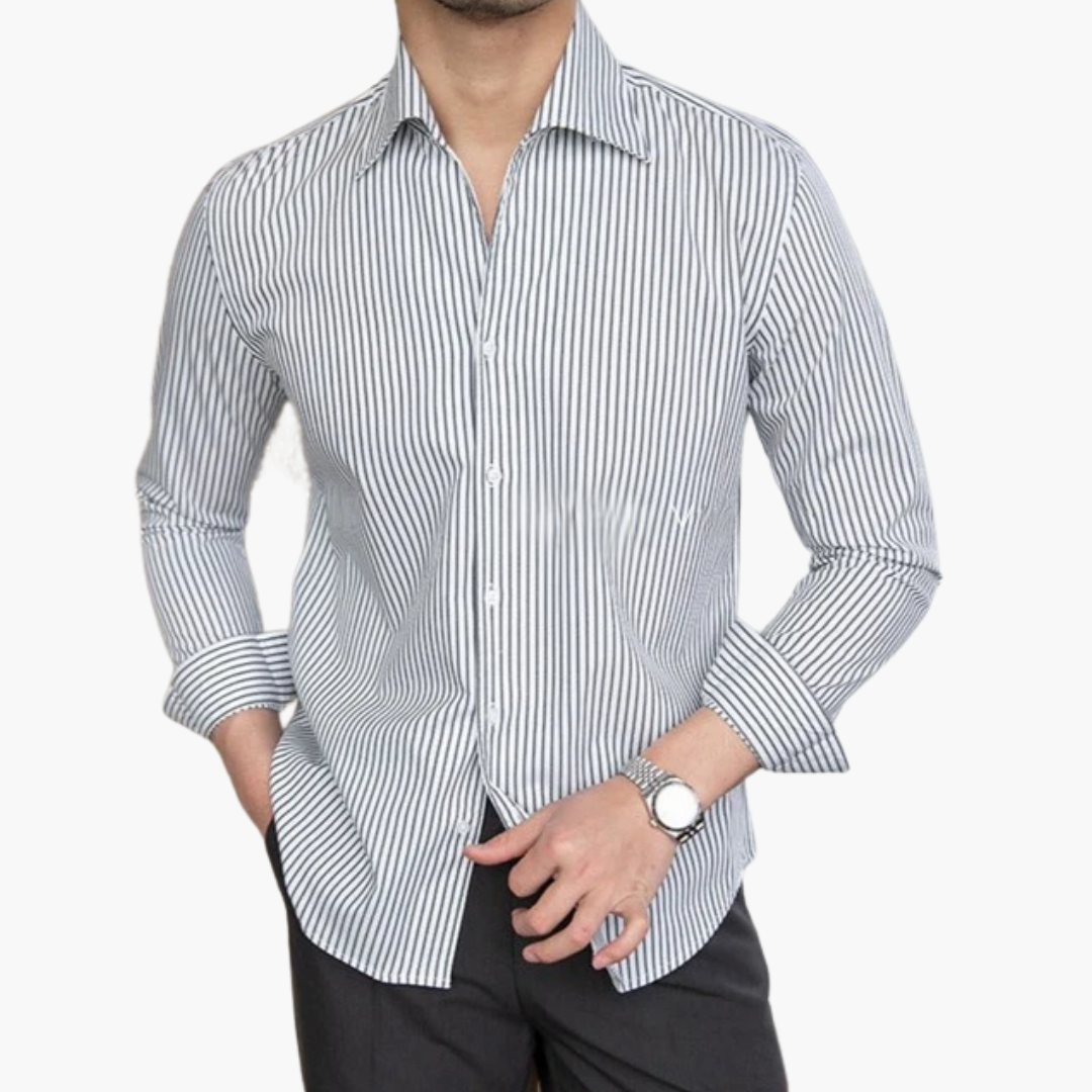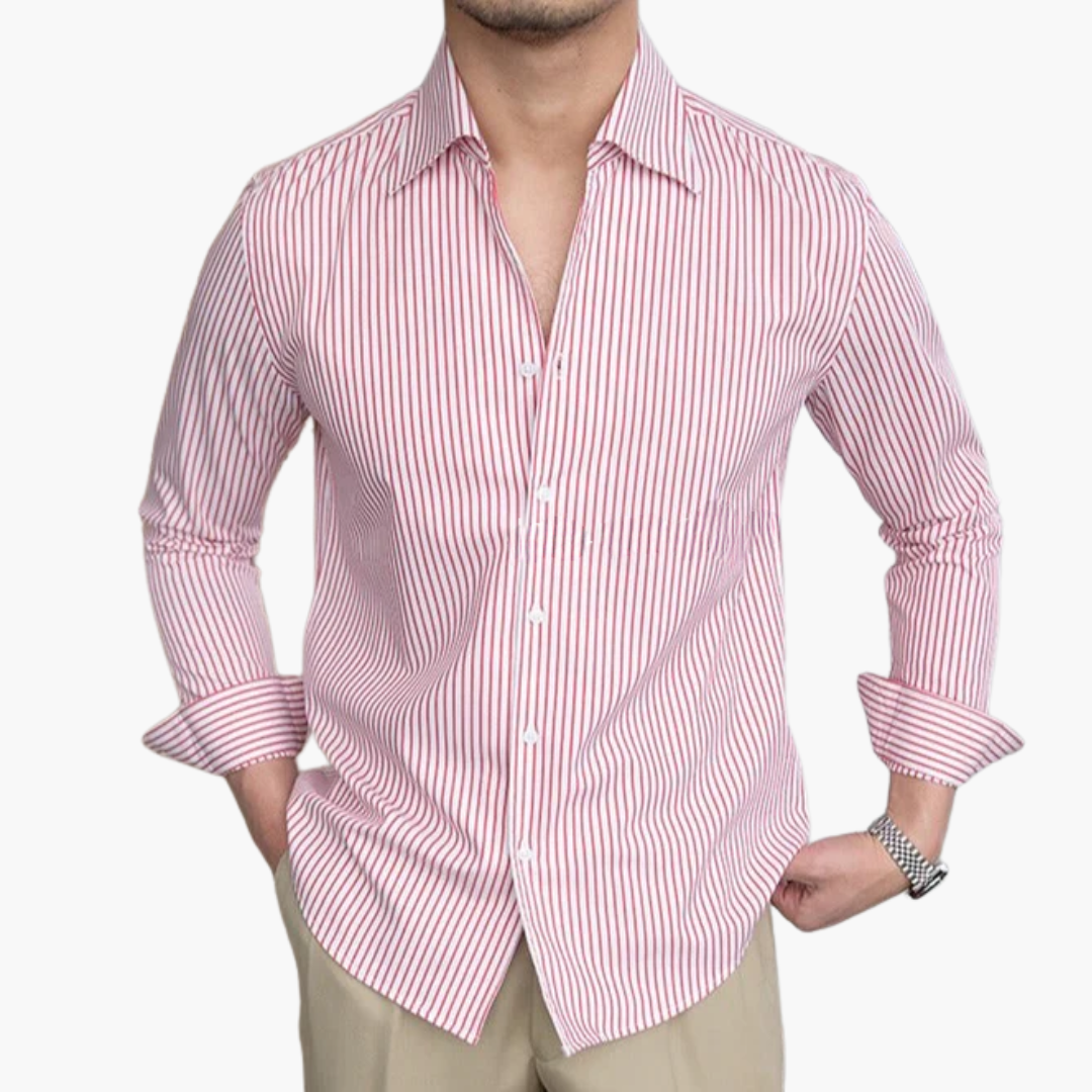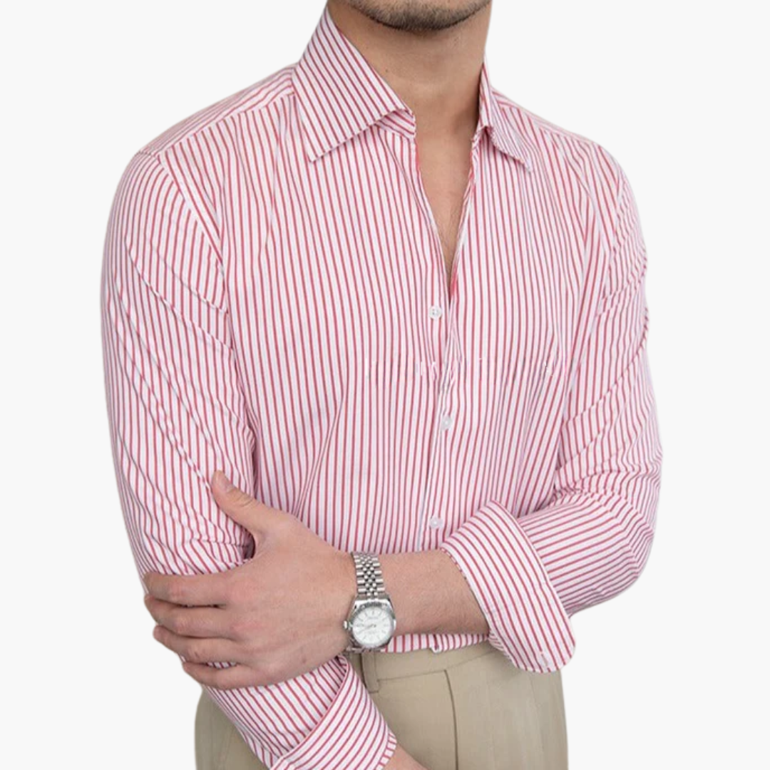 Gestreiftes Herrenhemd mit kontrastierendem Kragen und geknöpften Manschetten