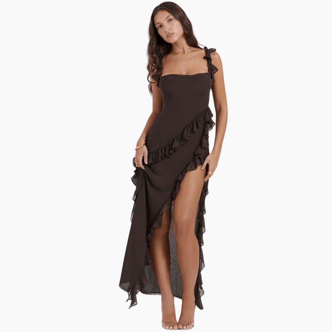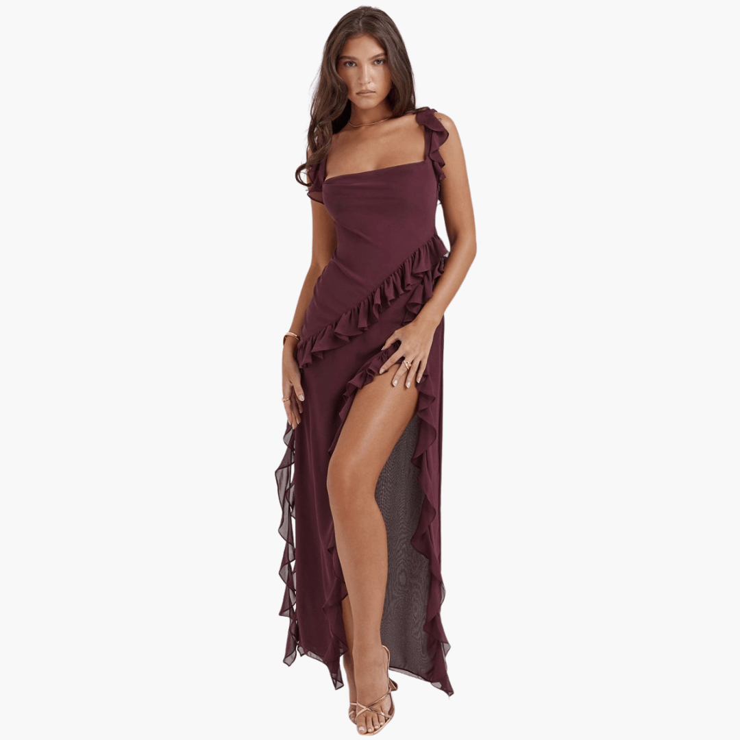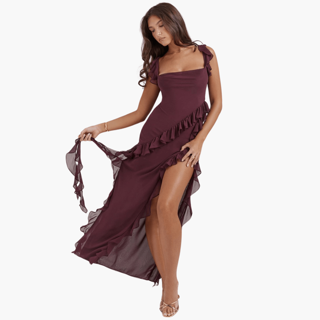 Sommerkleid mit Rüschen für Damen – Maxikleid mit hohem Schlitz