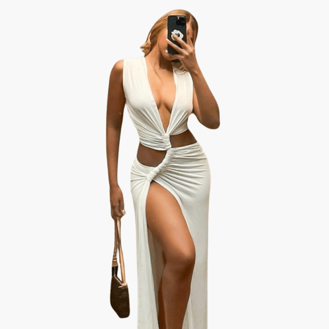 Halterneck-Maxikleid für Damen – mit Ausschnitt & hohem Schlitz