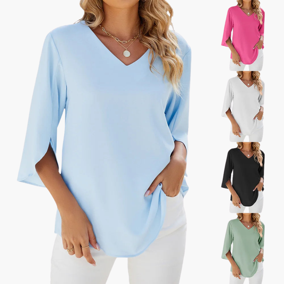 Bleiben Sie kühl & elegant mit dieser V-Ausschnitt-Bluse
