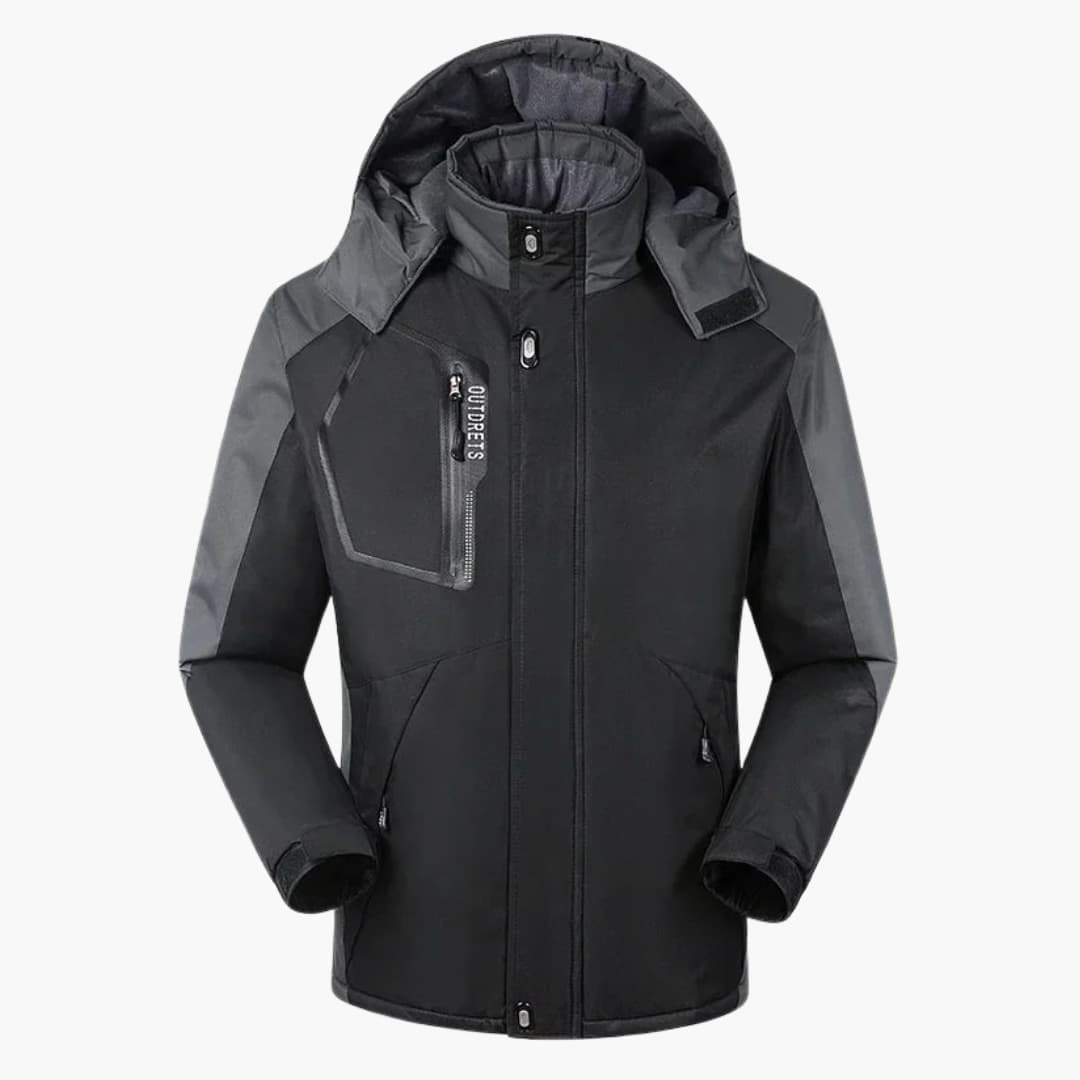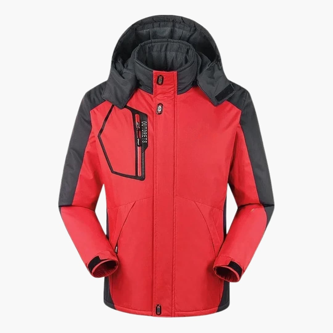 Herren-Skijacke mit Kapuze, Reißverschluss und Taschen.