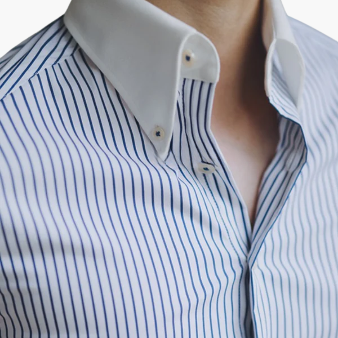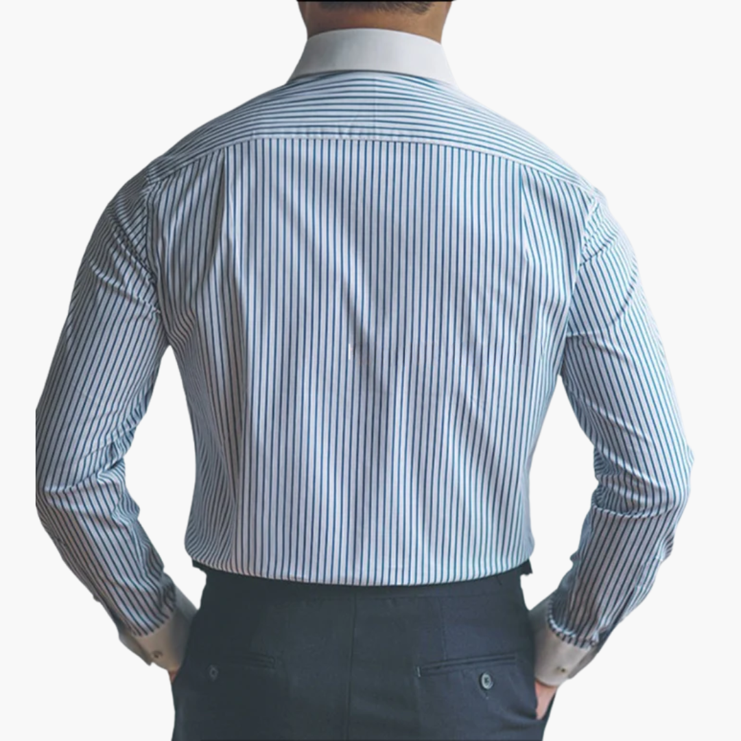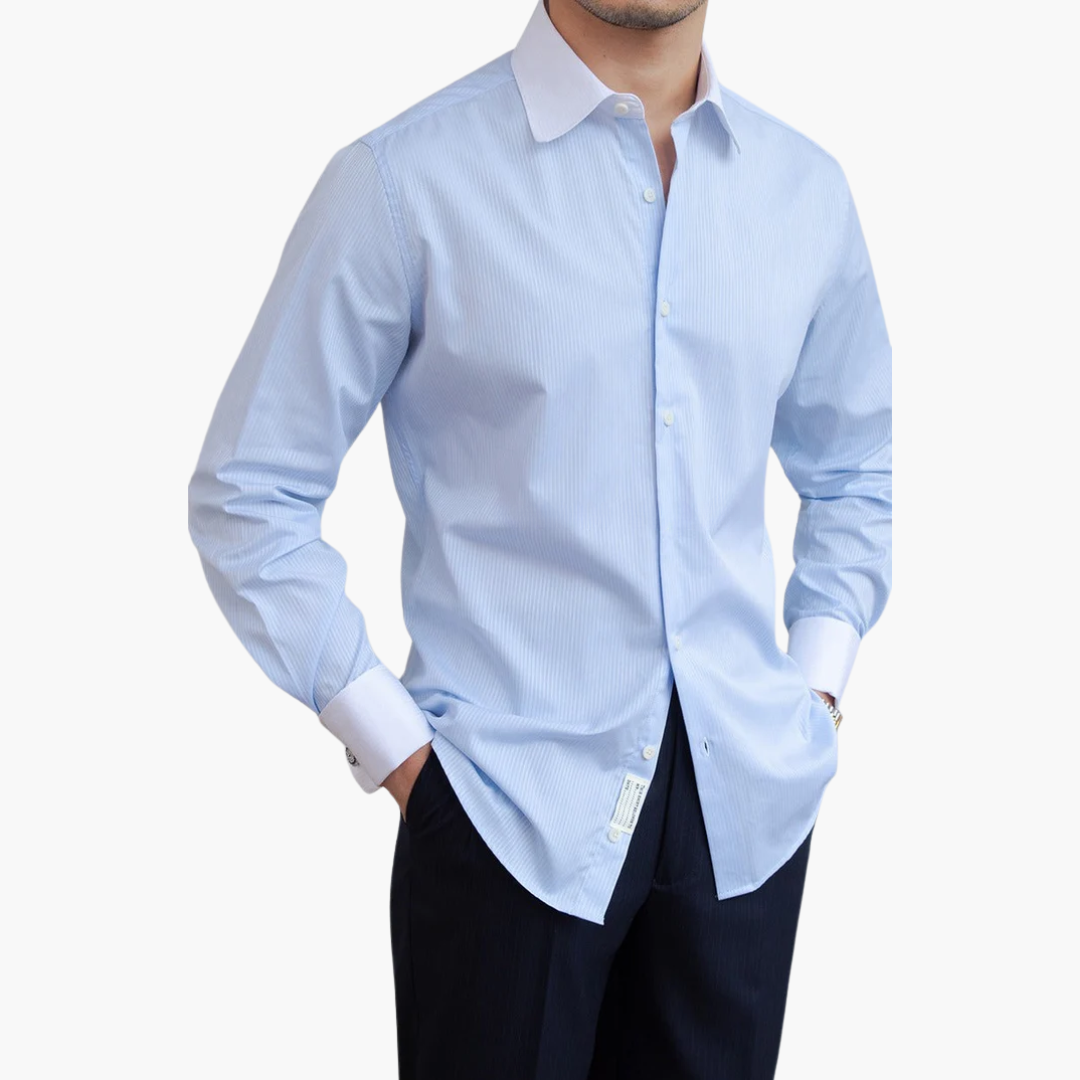 Gestreiftes Herrenhemd mit kontrastierendem Kragen und geknöpften Manschetten
