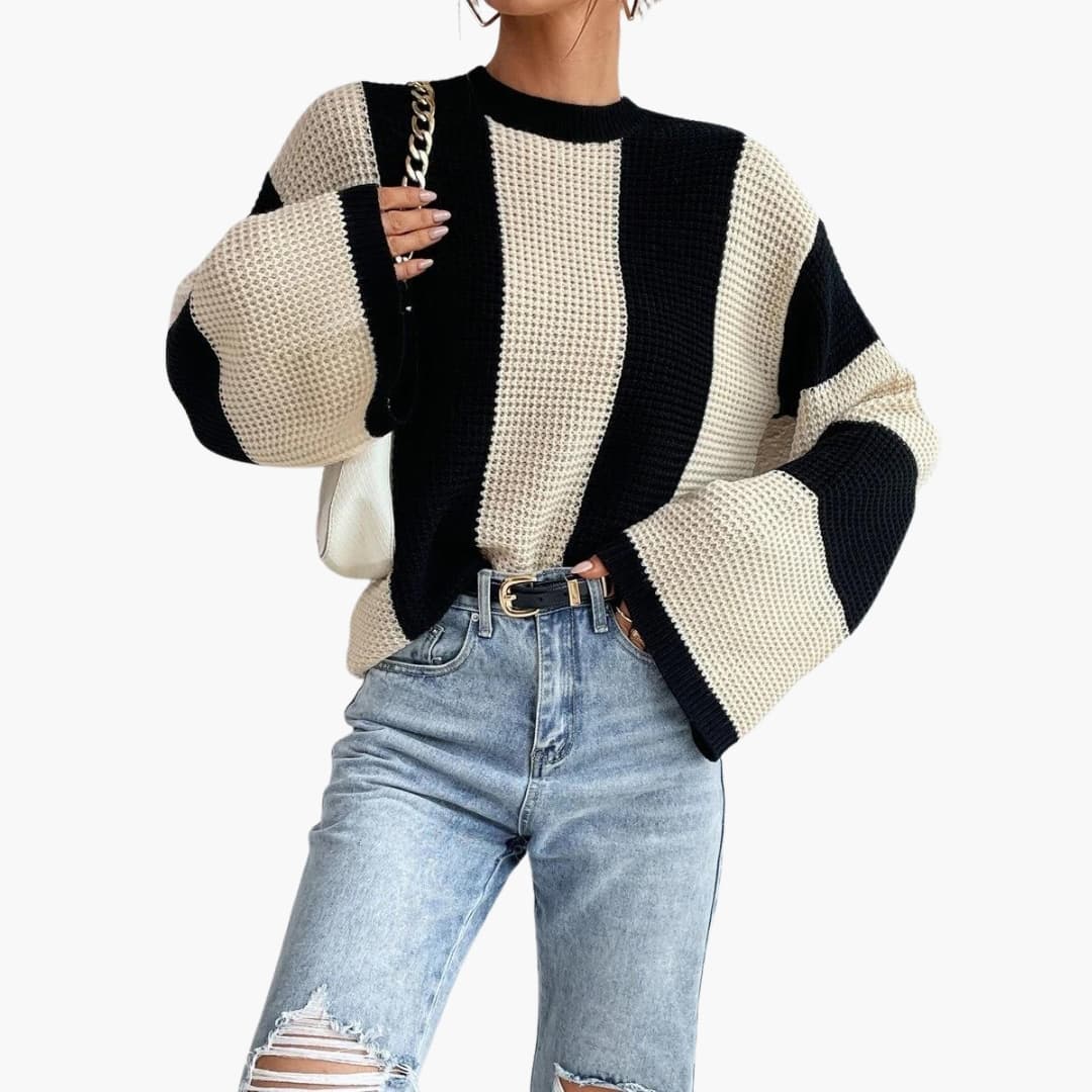 Gestreifter Damenstrickpullover mit Rundhalsausschnitt