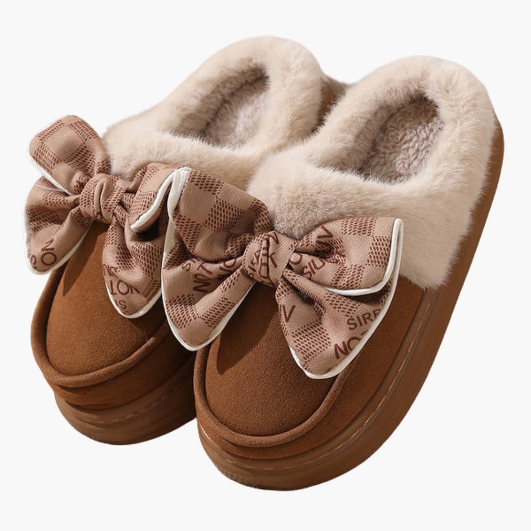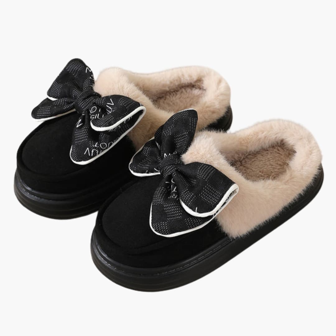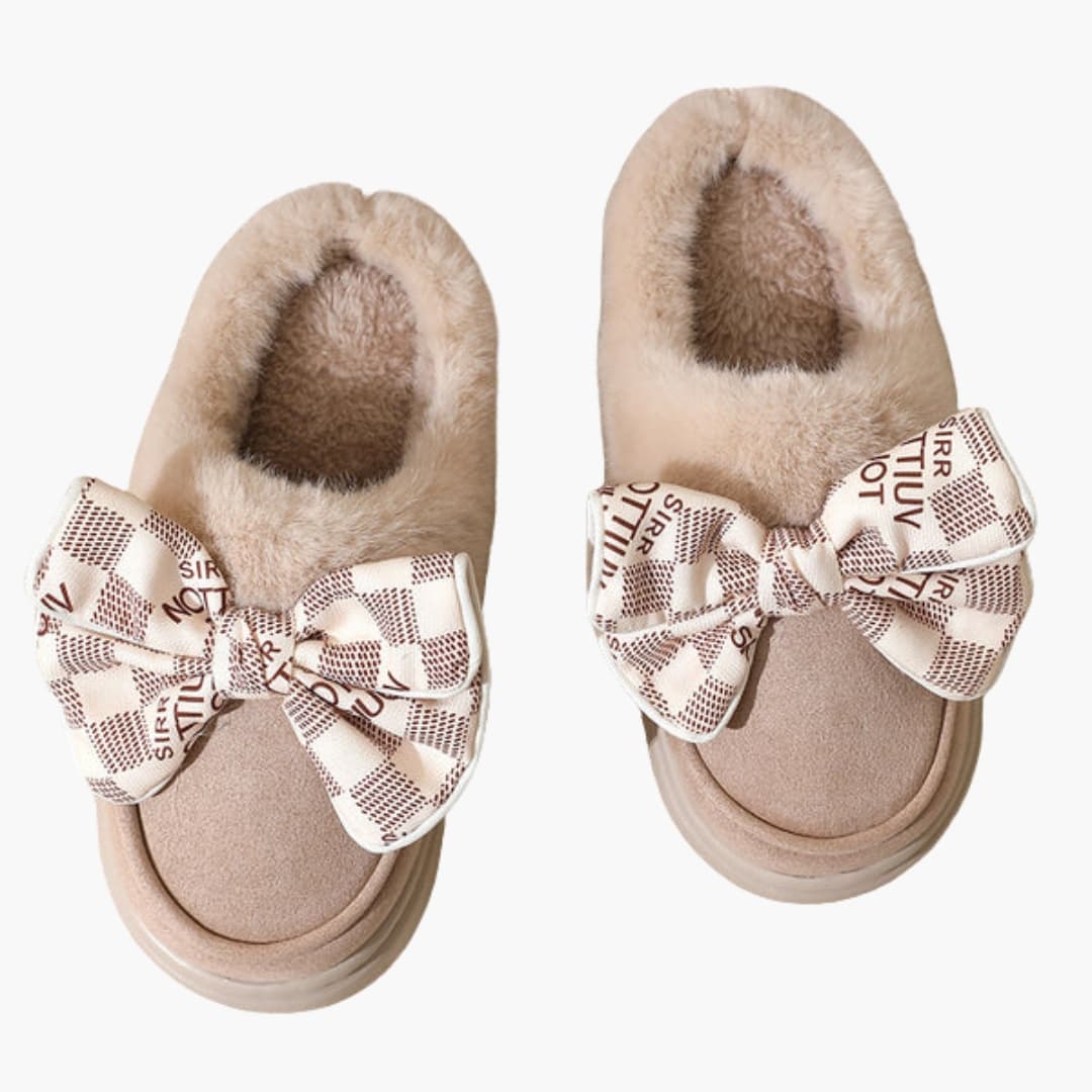Zapatillas de casa para mujer con detalle de lazo y forro de felpa