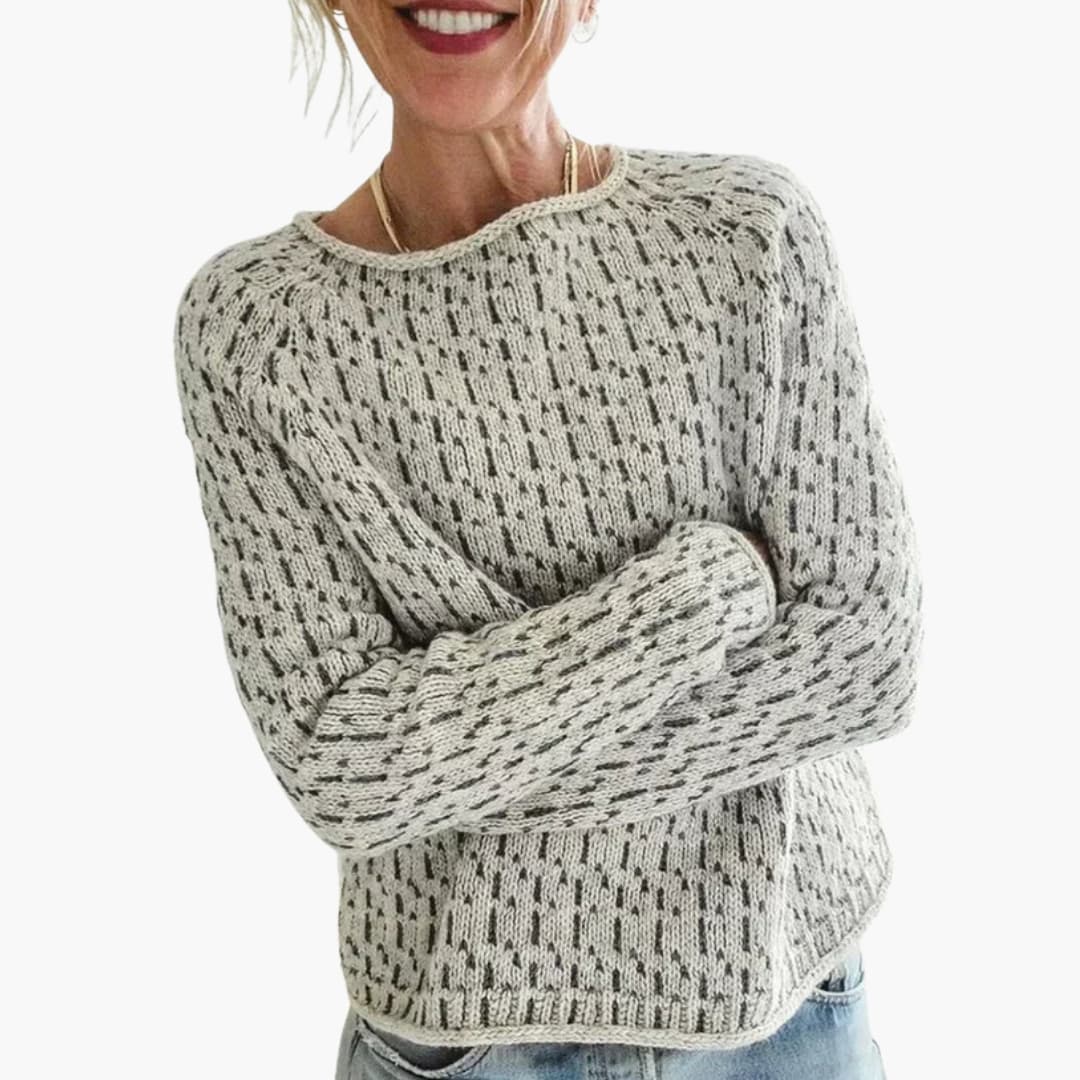 Naisten neulepaita pyöreällä kaula-aukolla ja väljä suoramallinen istuvuus
