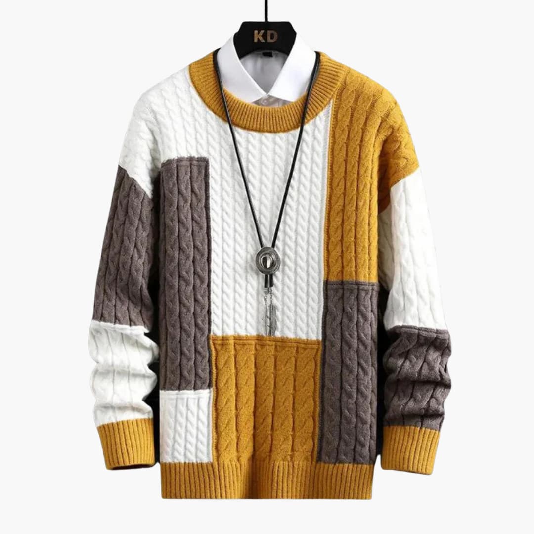 Miesten pitkähihainen neulepaita pyöreällä kaula-aukolla ja ruutukuviolla