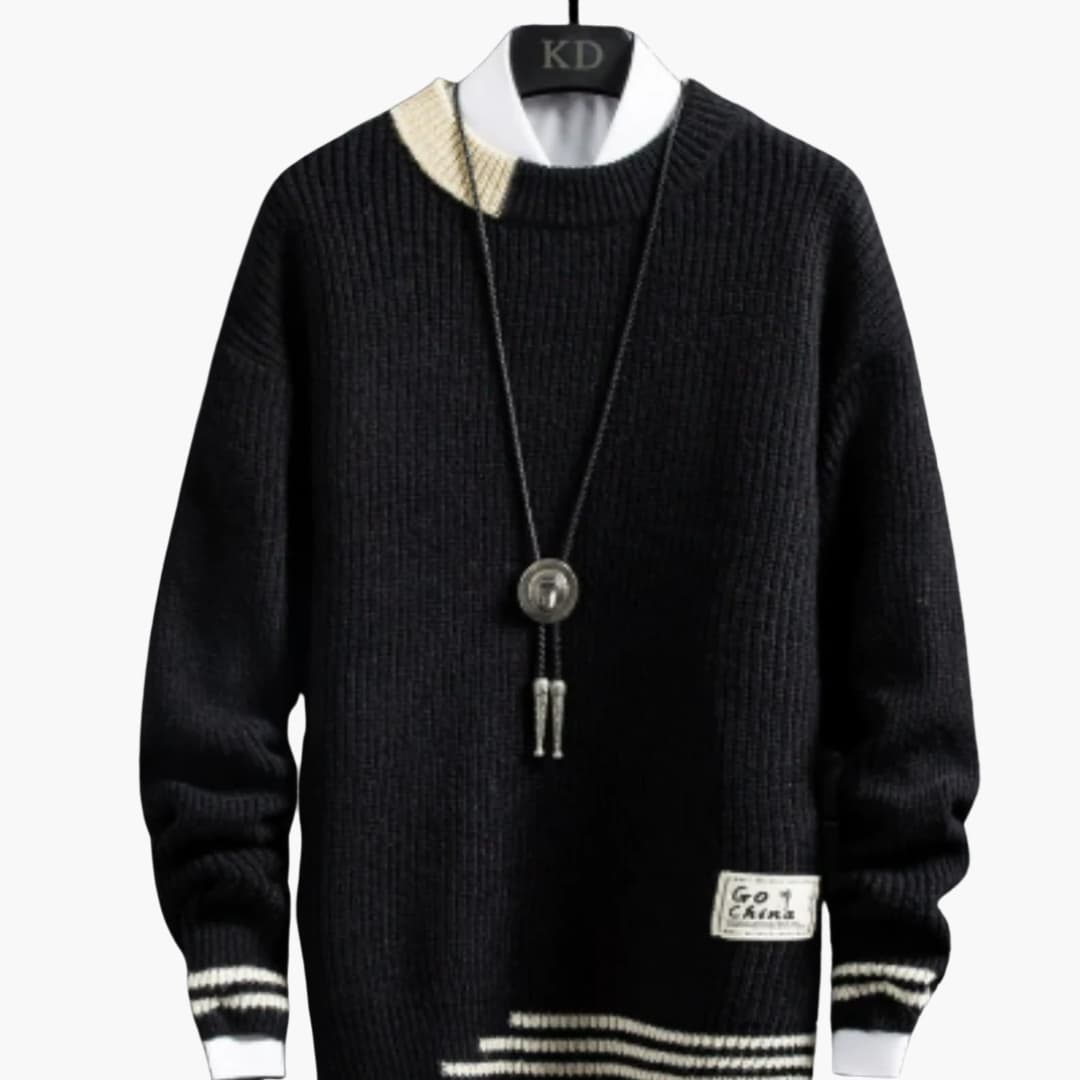 Miesten neulepaita pyöreällä kaula-aukolla ja resorireunuksilla