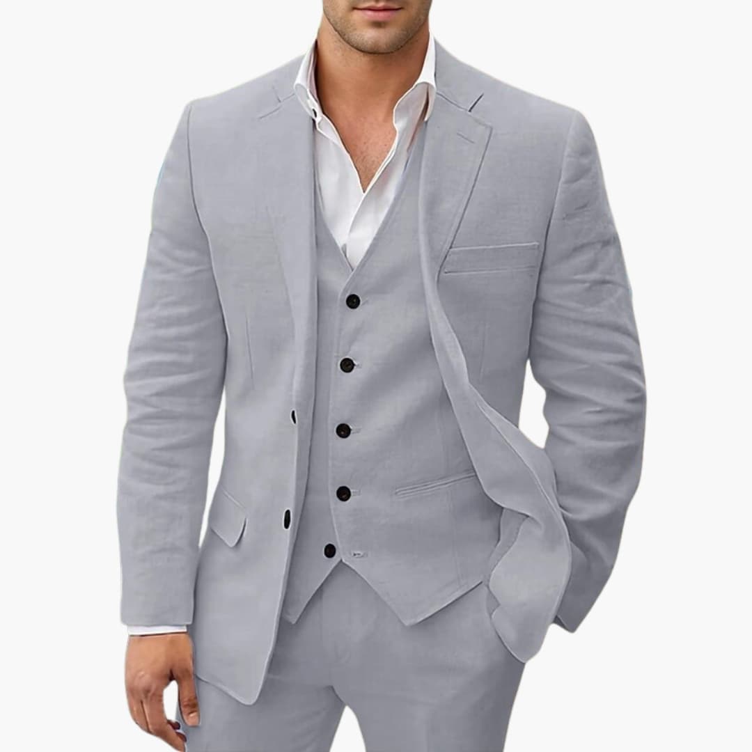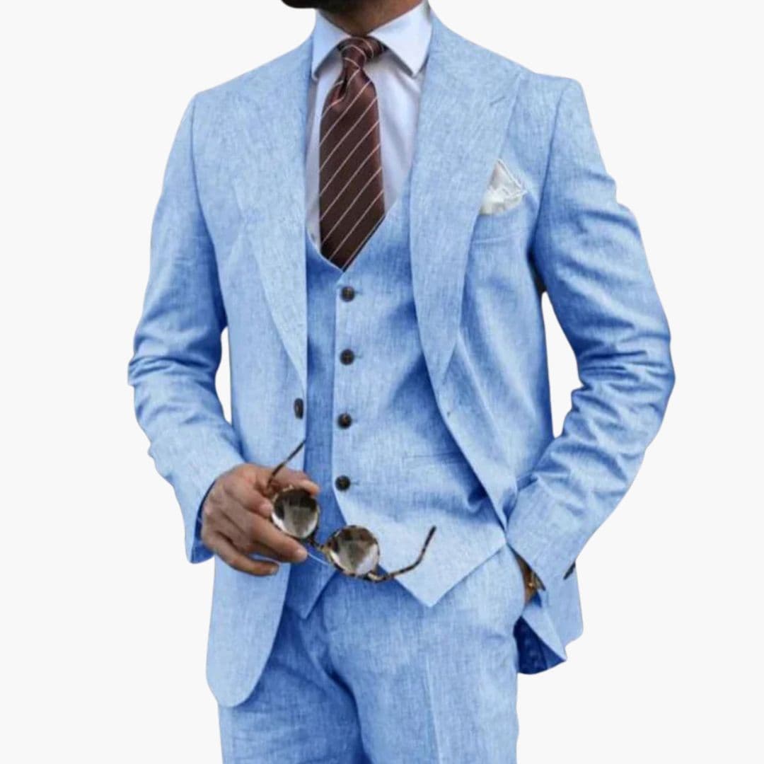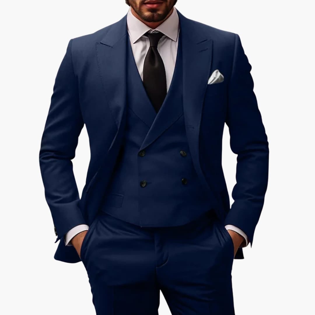 Miesten 3-osainen puku lovikauluksella