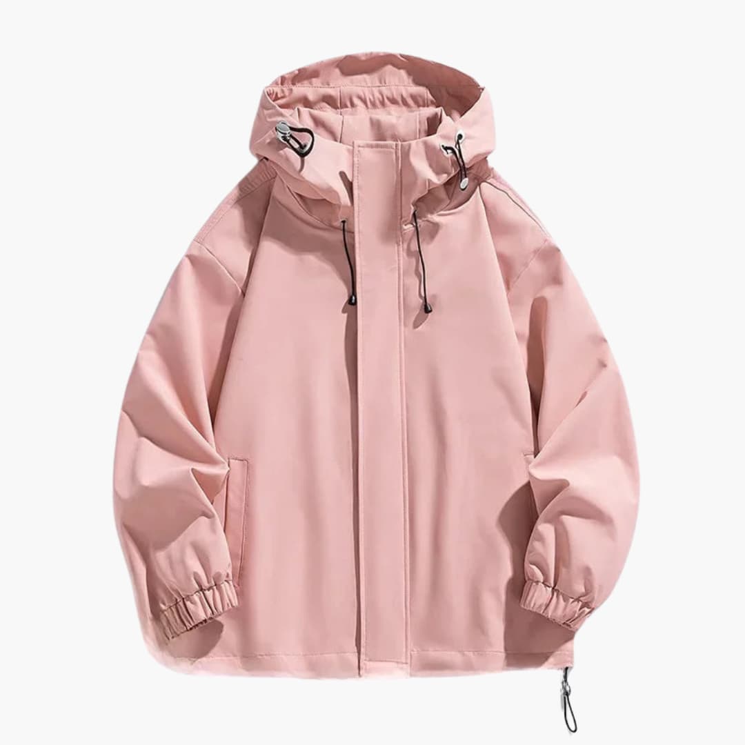 Kaulus ja huppu: Korkea kaulus säädettävällä kiristysnyörillä varustetulla hupulla.