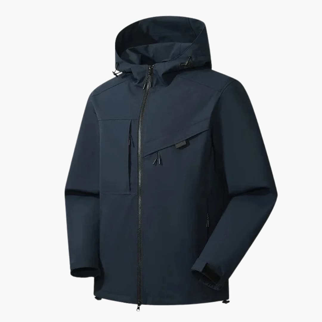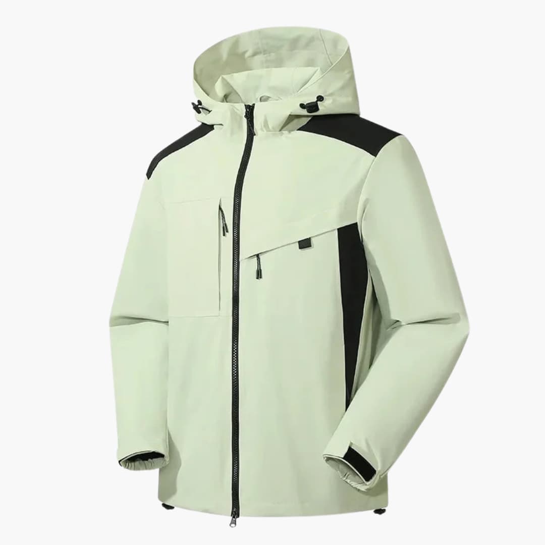 Miesten laskettelutakki hupulla ja käytännöllisillä vetoketjutaskuilla.