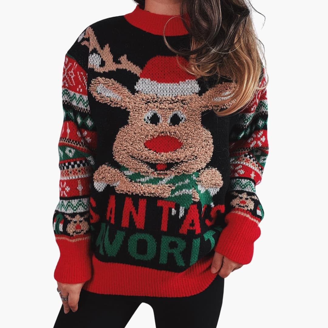 Naisten villapaita porokuvioinnilla