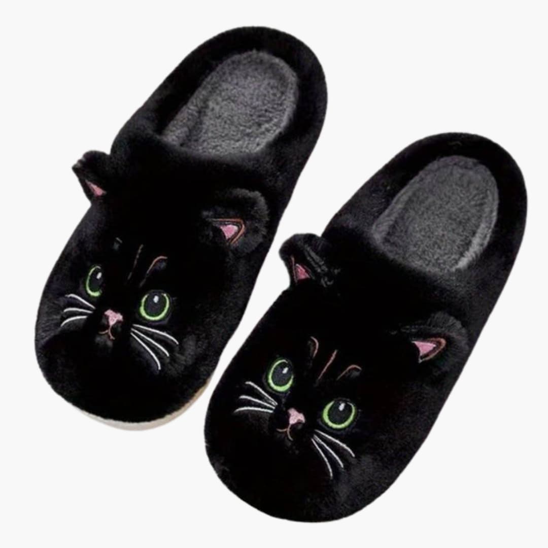 Chaussons pour femmes avec doublure en peluche et broderie de chat
