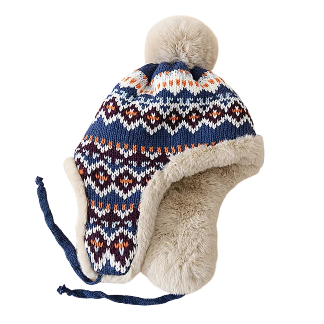 Bonnet tricoté unisexe avec cache-oreilles et pompon en fausse fourrure