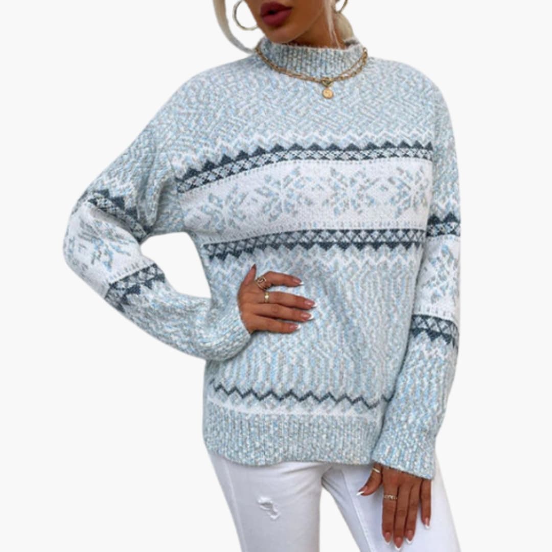 Pull tricoté pour femmes avec col montant et motif Fair Isle