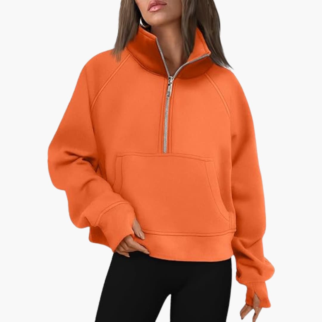 Sweatshirt Mná le Muineál Leath-Zip agus Póca Cangarú