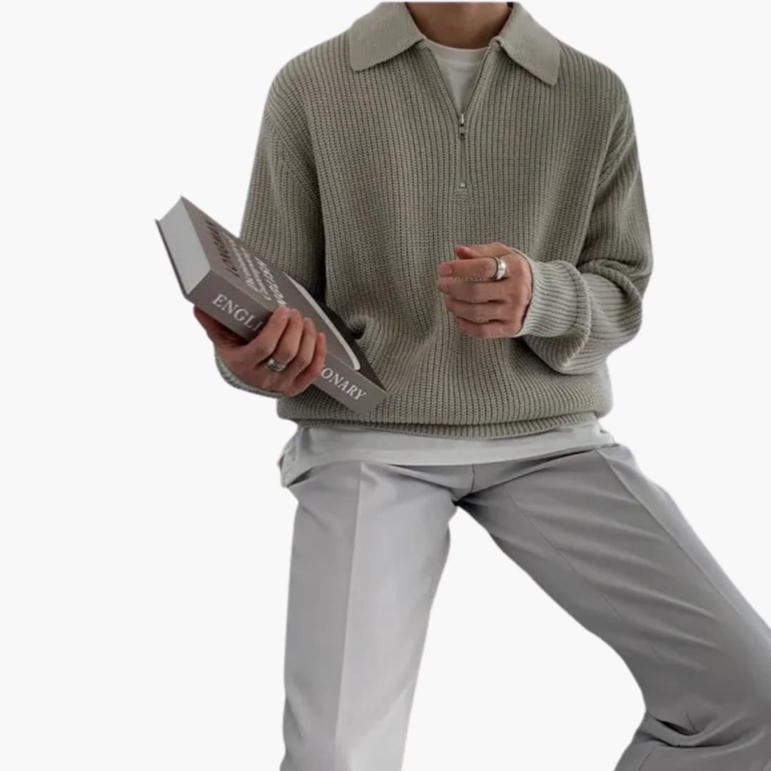 Geansaí Fir le Zip Ceathrú agus Patrún Ribáilte