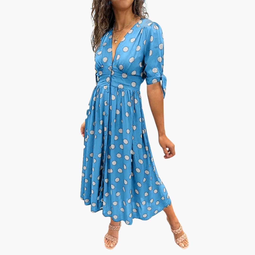 Gúna Polca Dots do Mhná – Gúna Samhraidh Midi le Cnaipí