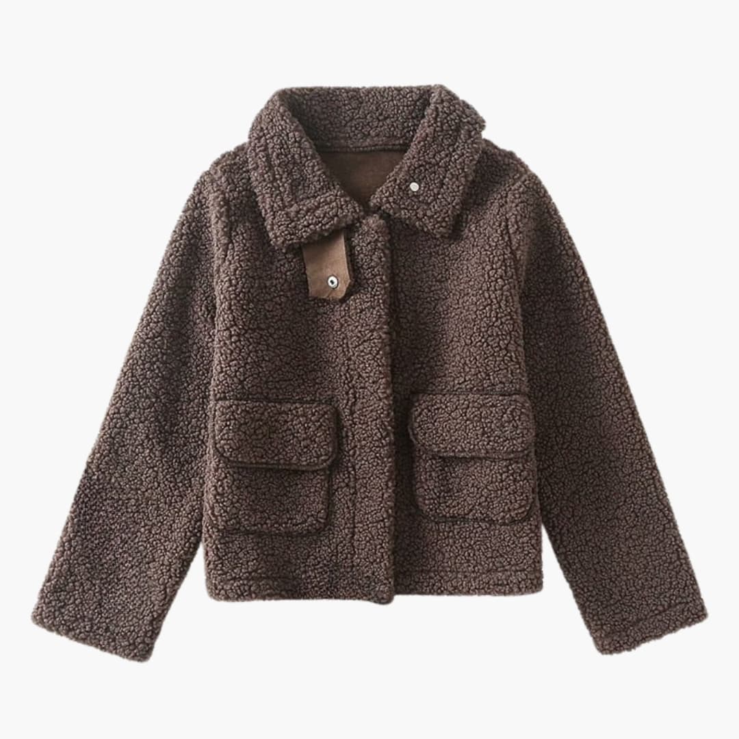 Cóta Mná i Faux Fur le Dúnadh Cnaipe agus Pócaí Clapa.