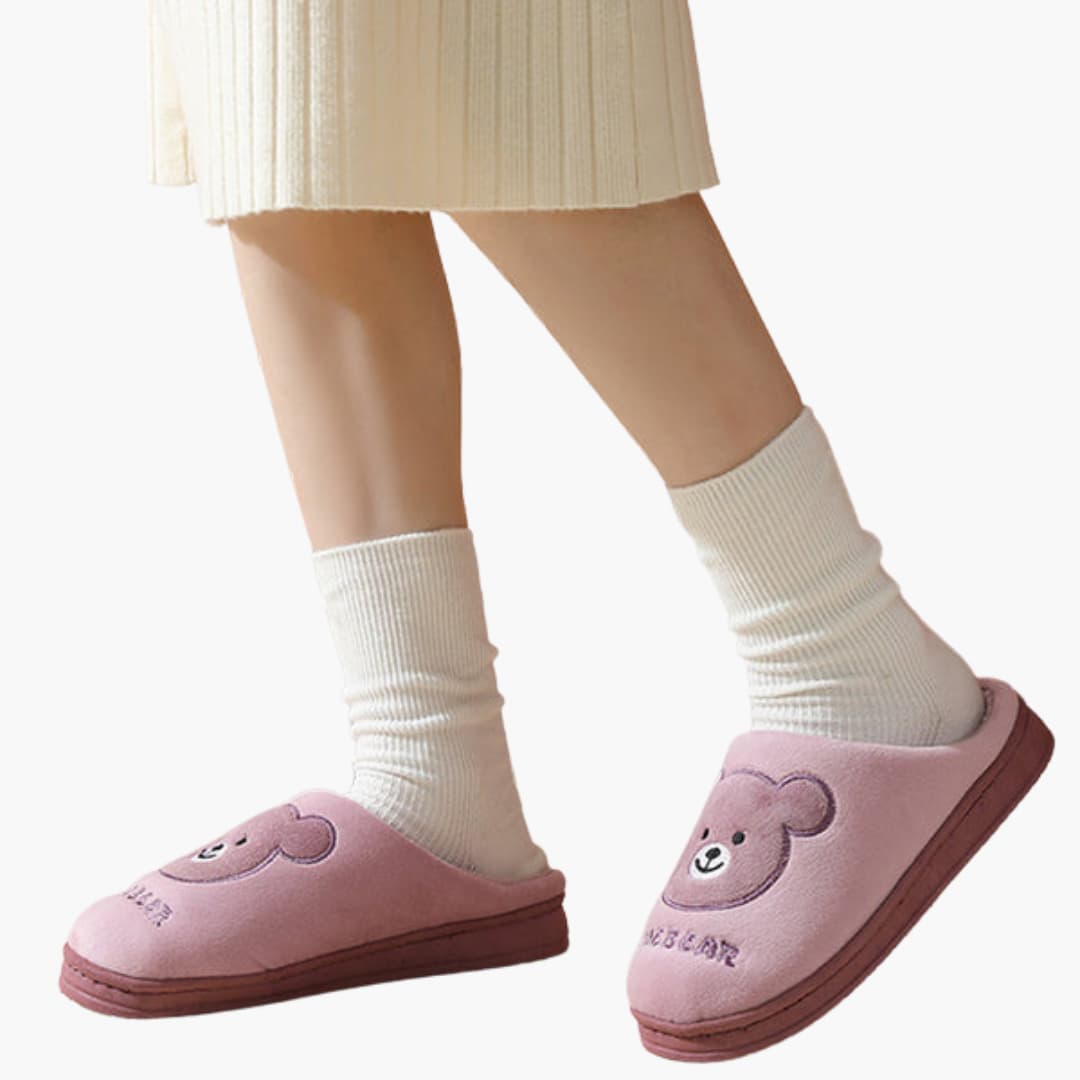 Slippers Sleamhnáin do Mhná le Sníomhán Mearg agus Línáil Inmheánach Plush