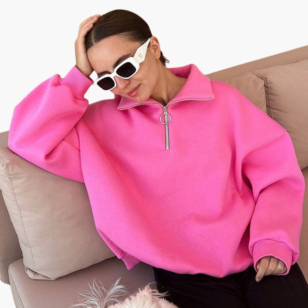 Ženski džemper s patentnim zatvaračem sprijeda i visokim ovratnikom, moderan