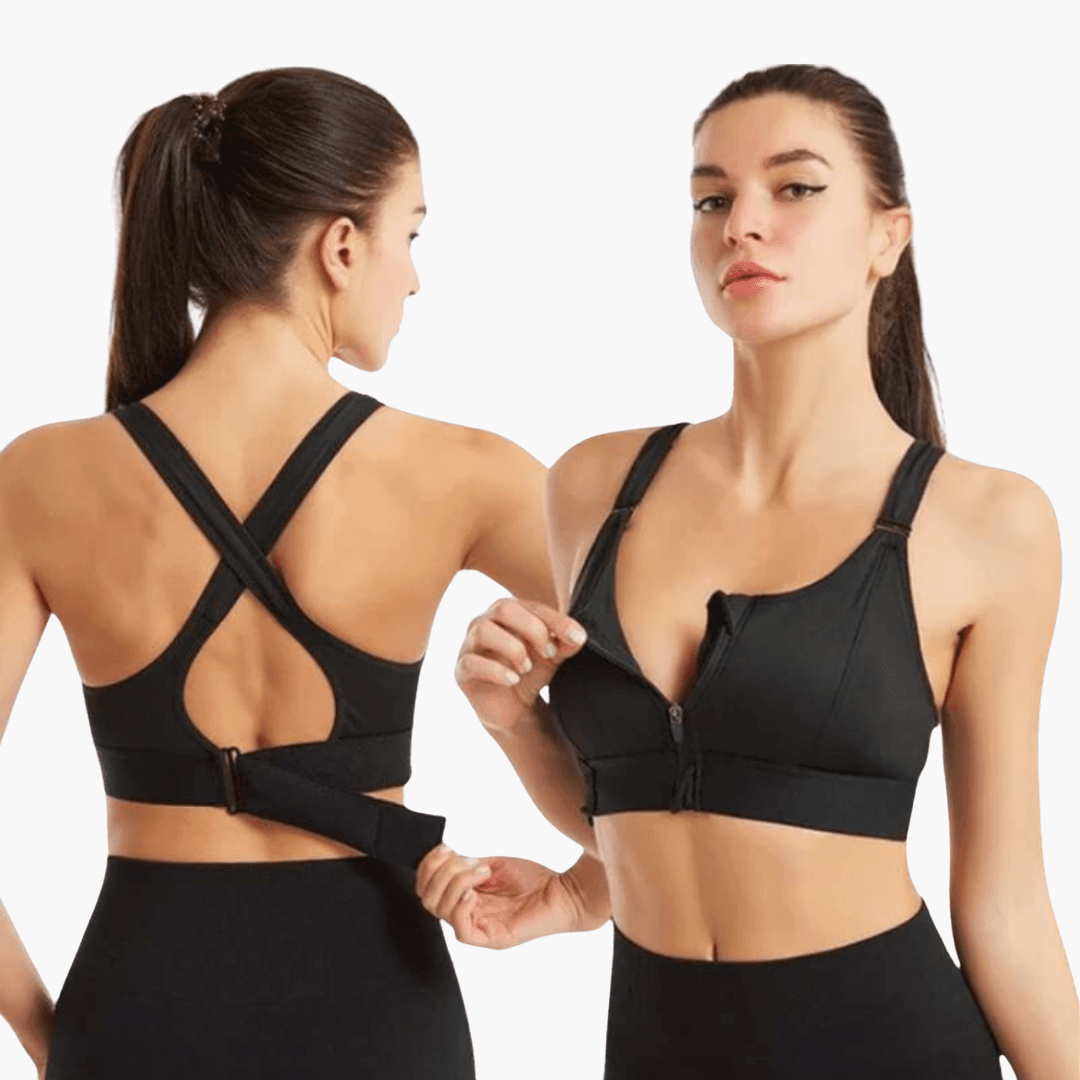 Ženski sportski grudnjak s patentnim zatvaračem – križni leđni dio za trening