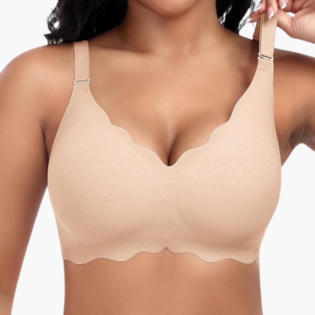 Bežični ženski grudnjak s V-izrezom i čipkastim detaljima