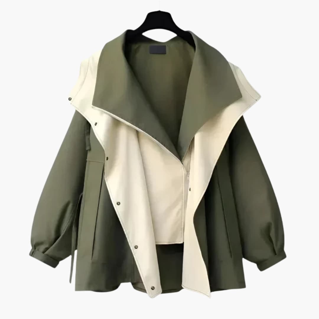 Ženska oversized jakna sa patentnim zatvaračem i širokim ovratnikom