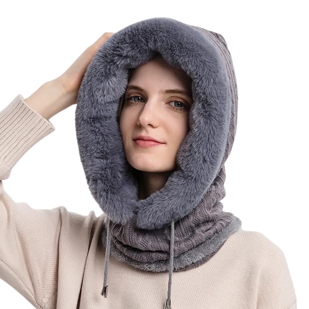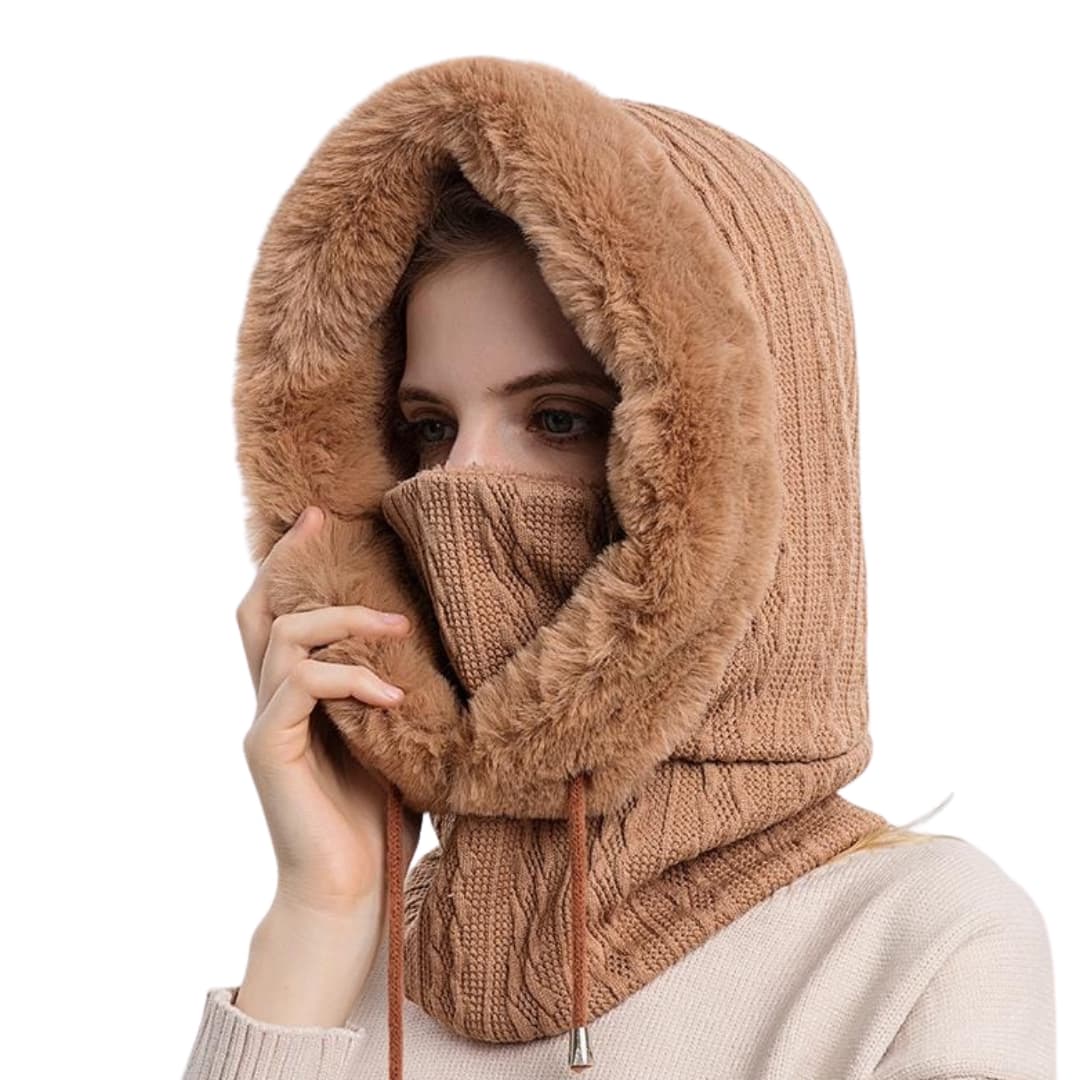 Ženski zimski komplet s pletenom kapom i odgovarajućom maskom