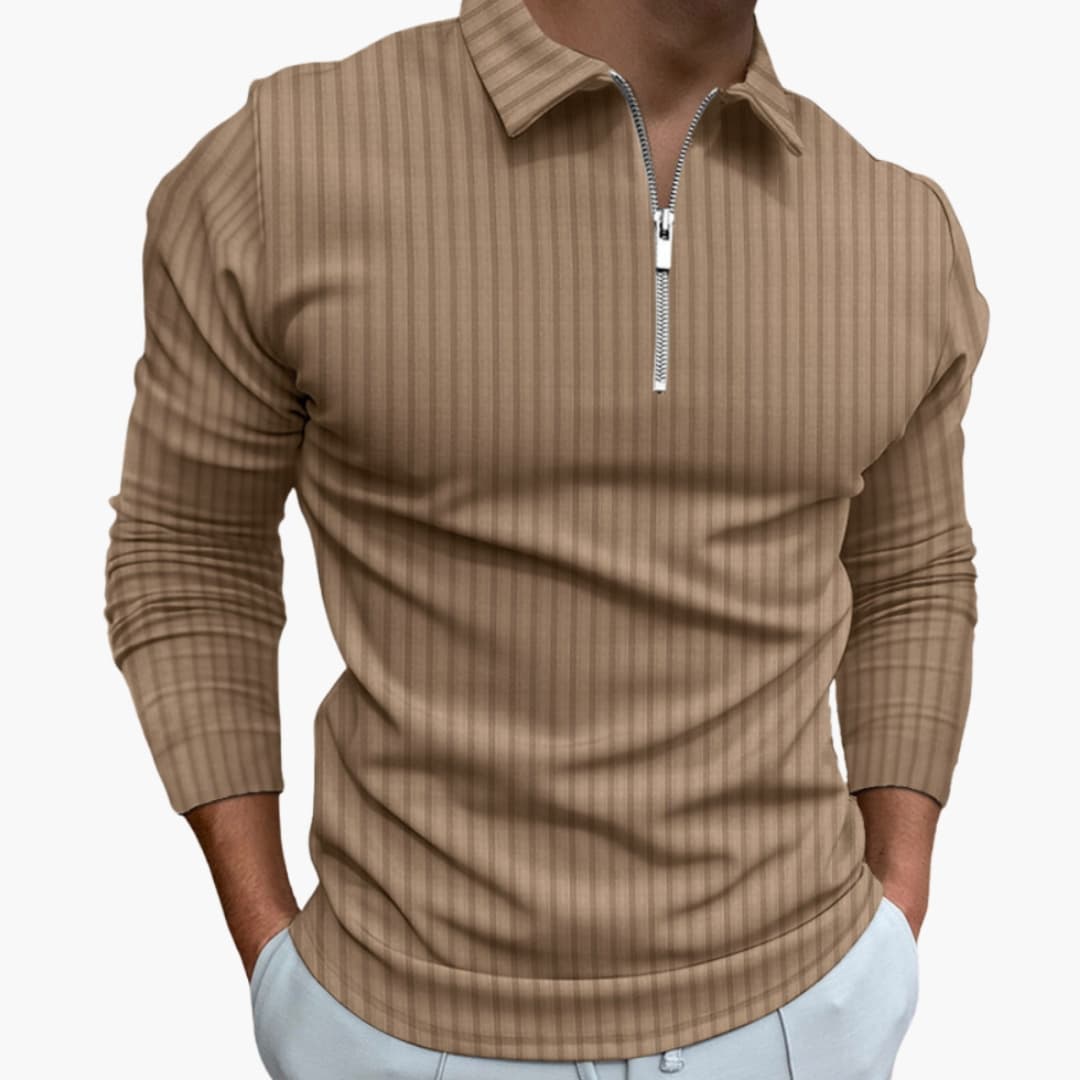 Muški rebrasti džemper s patentnim zatvaračem na pola duljine i ovratnikom.