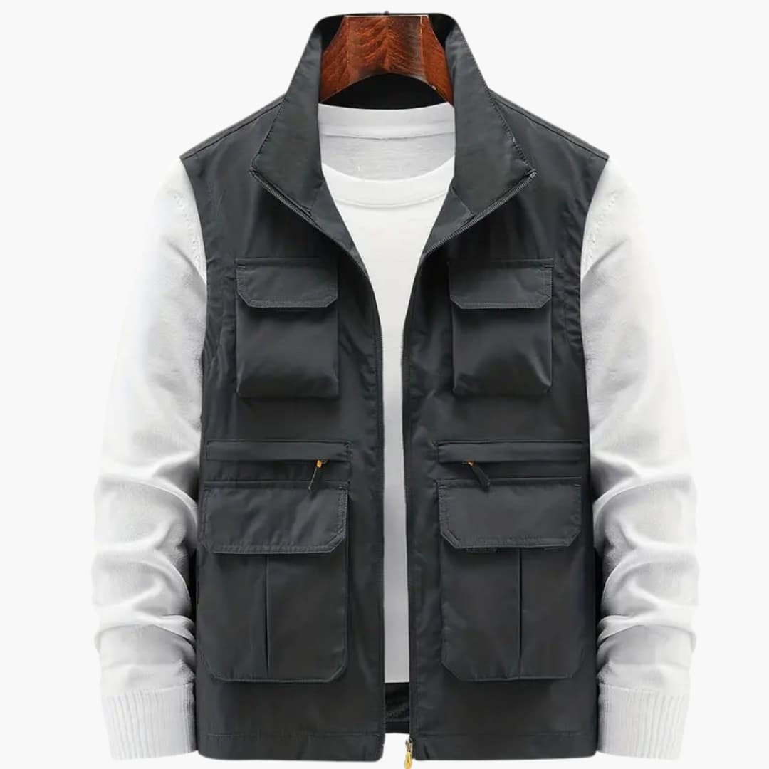 Muški prsluk s prednjim patentnim zatvaračem i više džepova