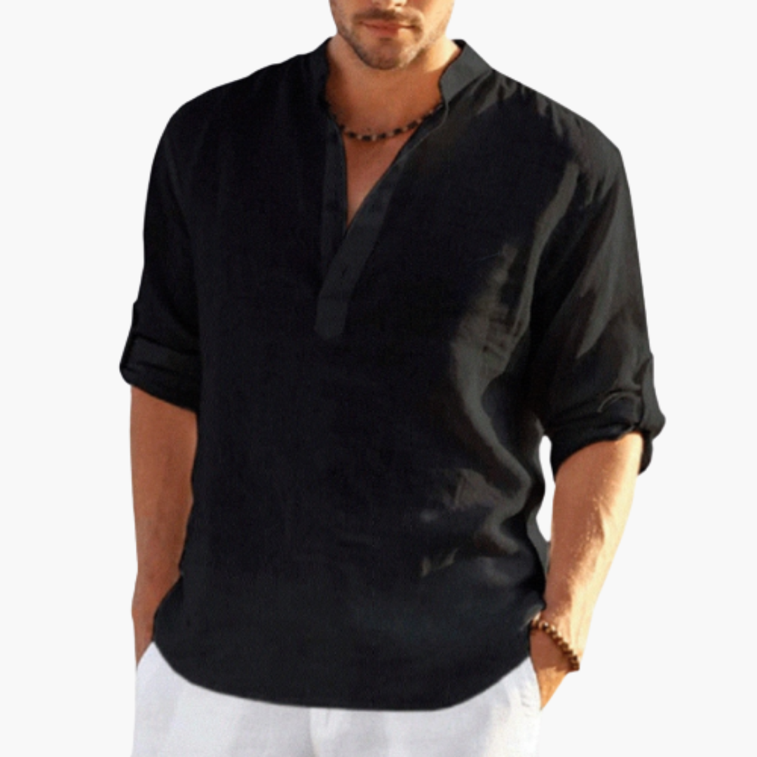 Férfi alkalmi lenvászon ing – hosszú ujjú, Henley stílusú