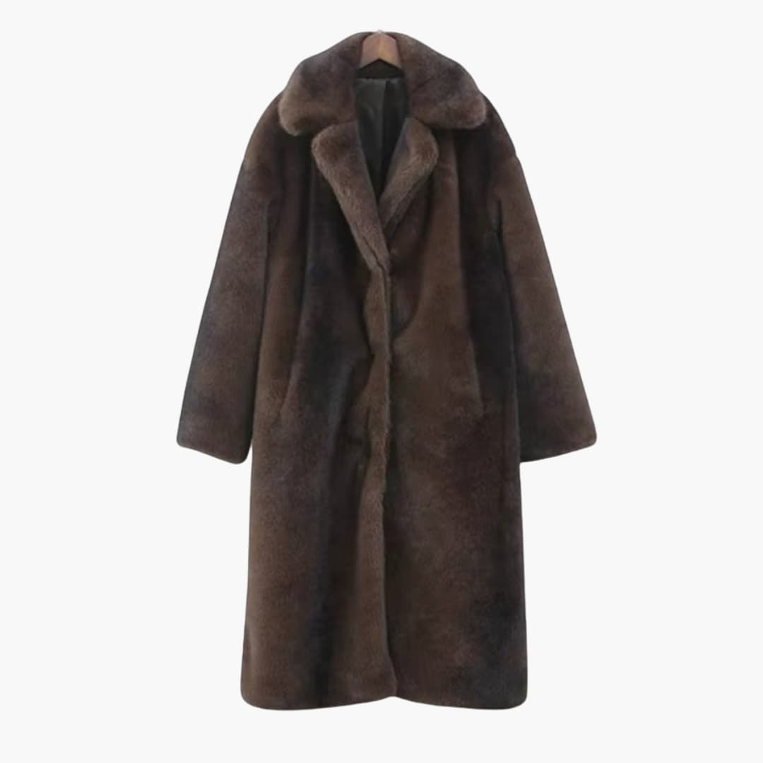 Hosszú női kabát hajtókás gallérral és gombos záródással