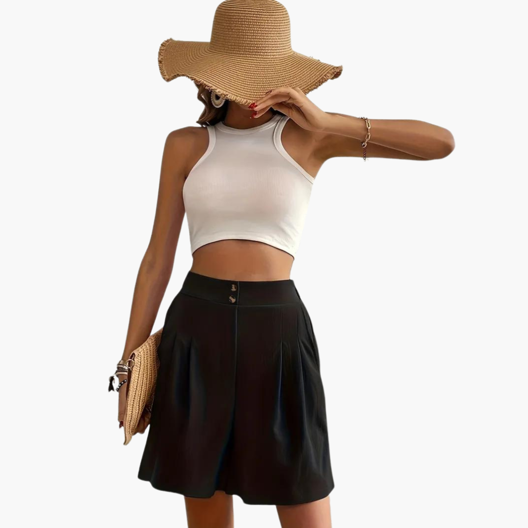 Sokoldalú kombinációk: A szett könnyedén párosítható különféle felsőkkel és kiegészítőkkel, hogy megalkosd a tökéletes nyári szettedet.