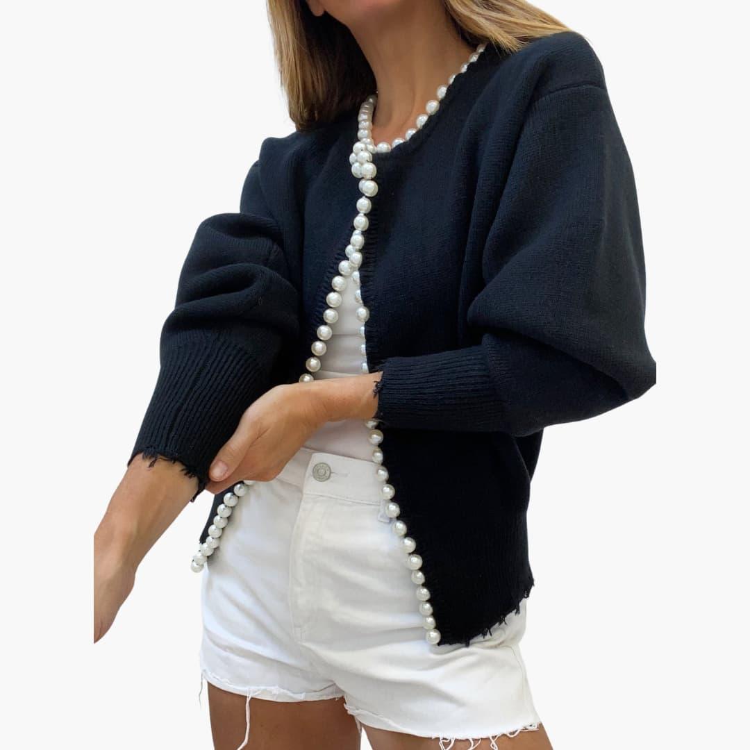 Női kardigán gyöngyökkel – túlméretezett kötött dzseki nőknek