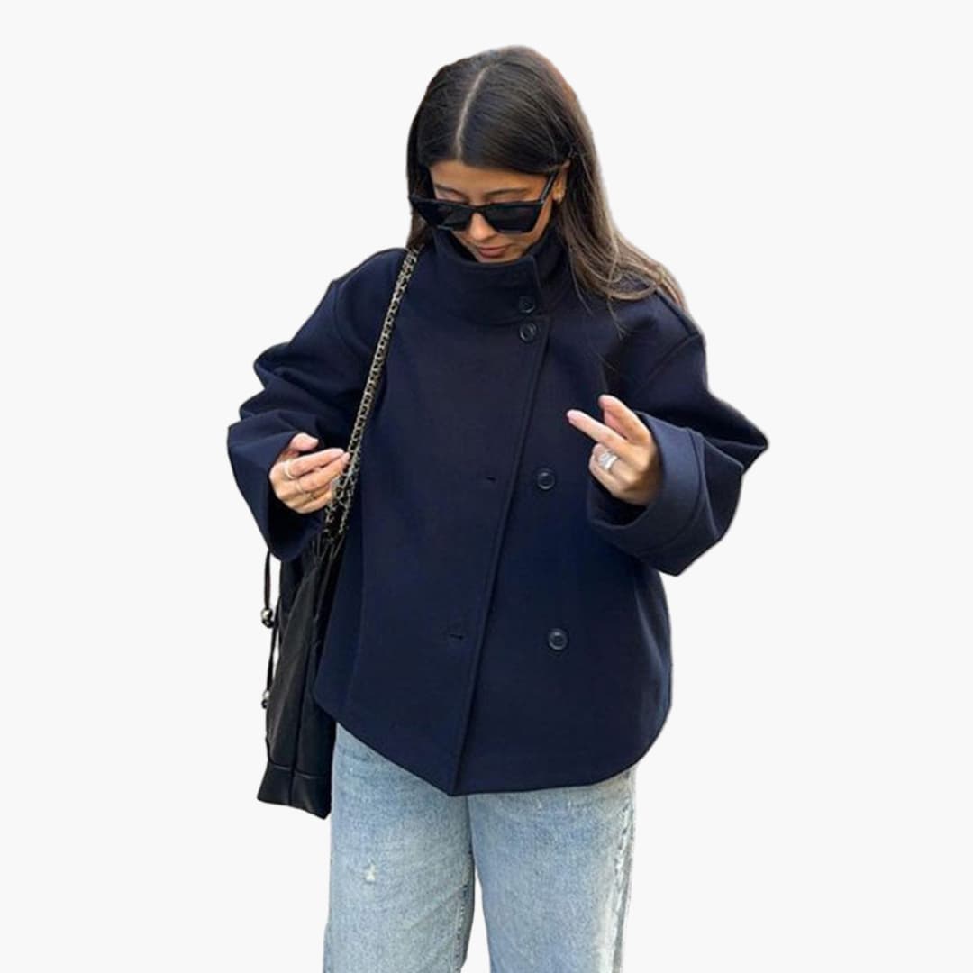 Női dzseki széles gallérral és gombos záródással