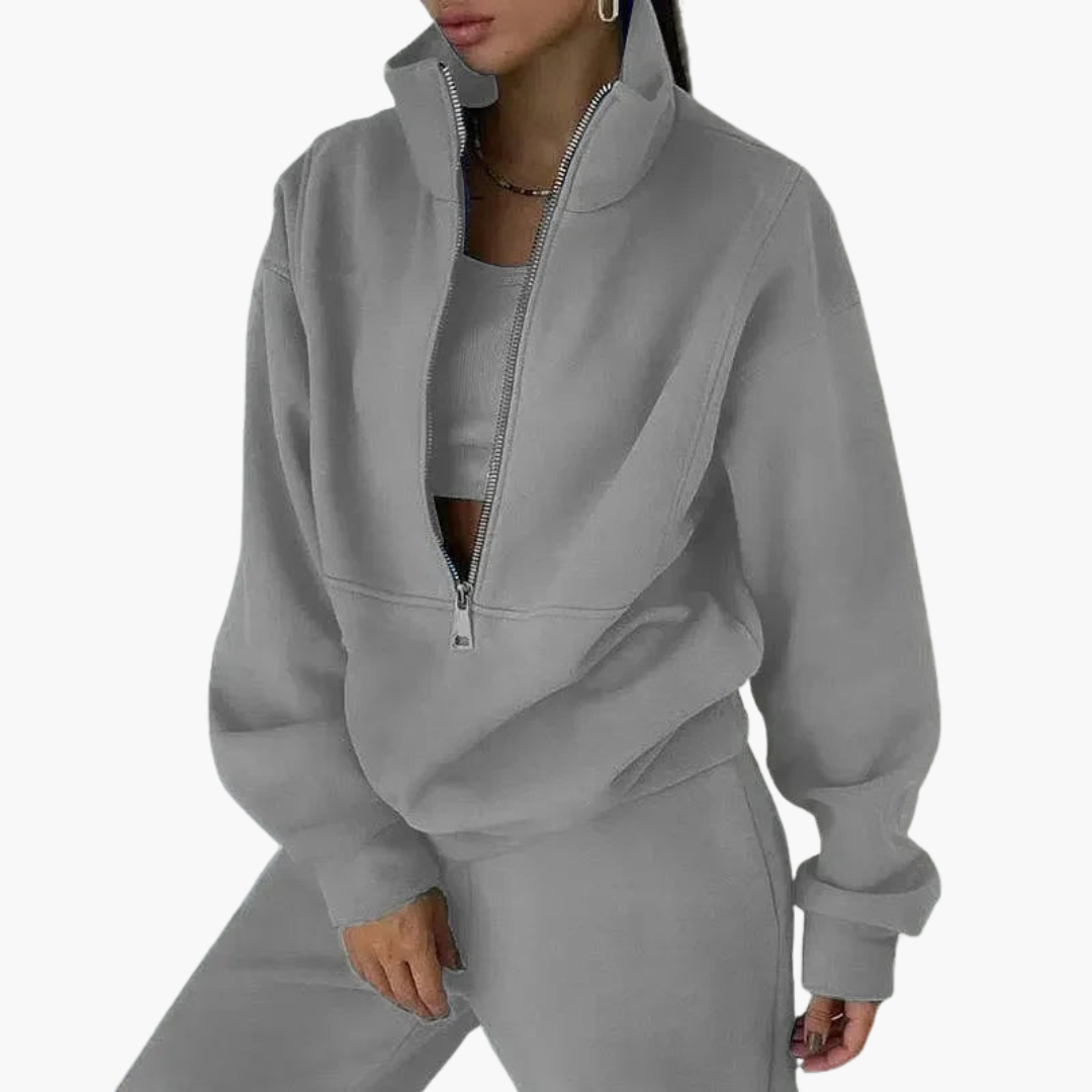 Tuta da donna con felpa e pantaloni con cerniera