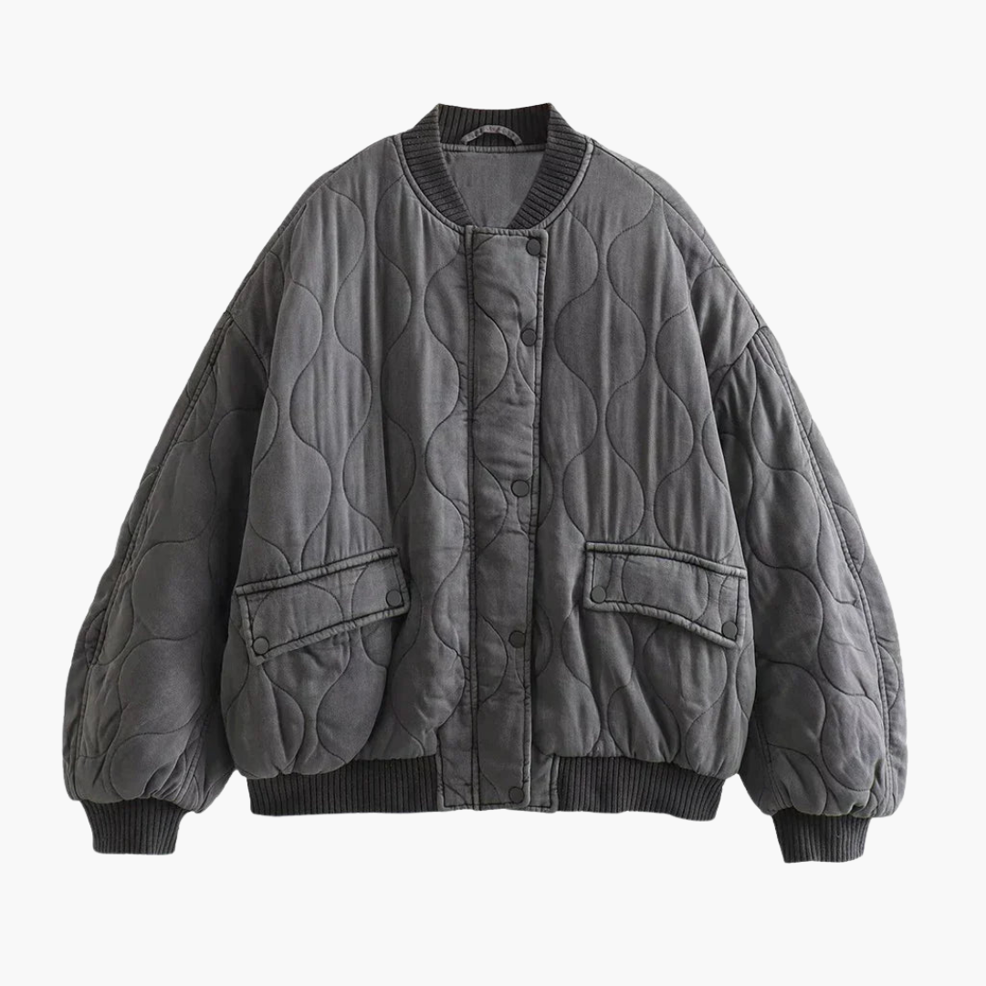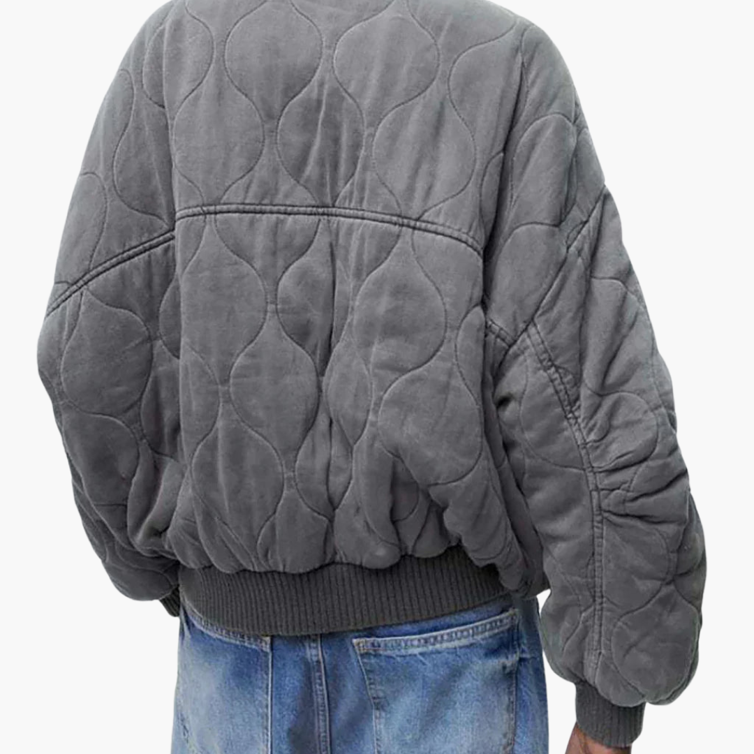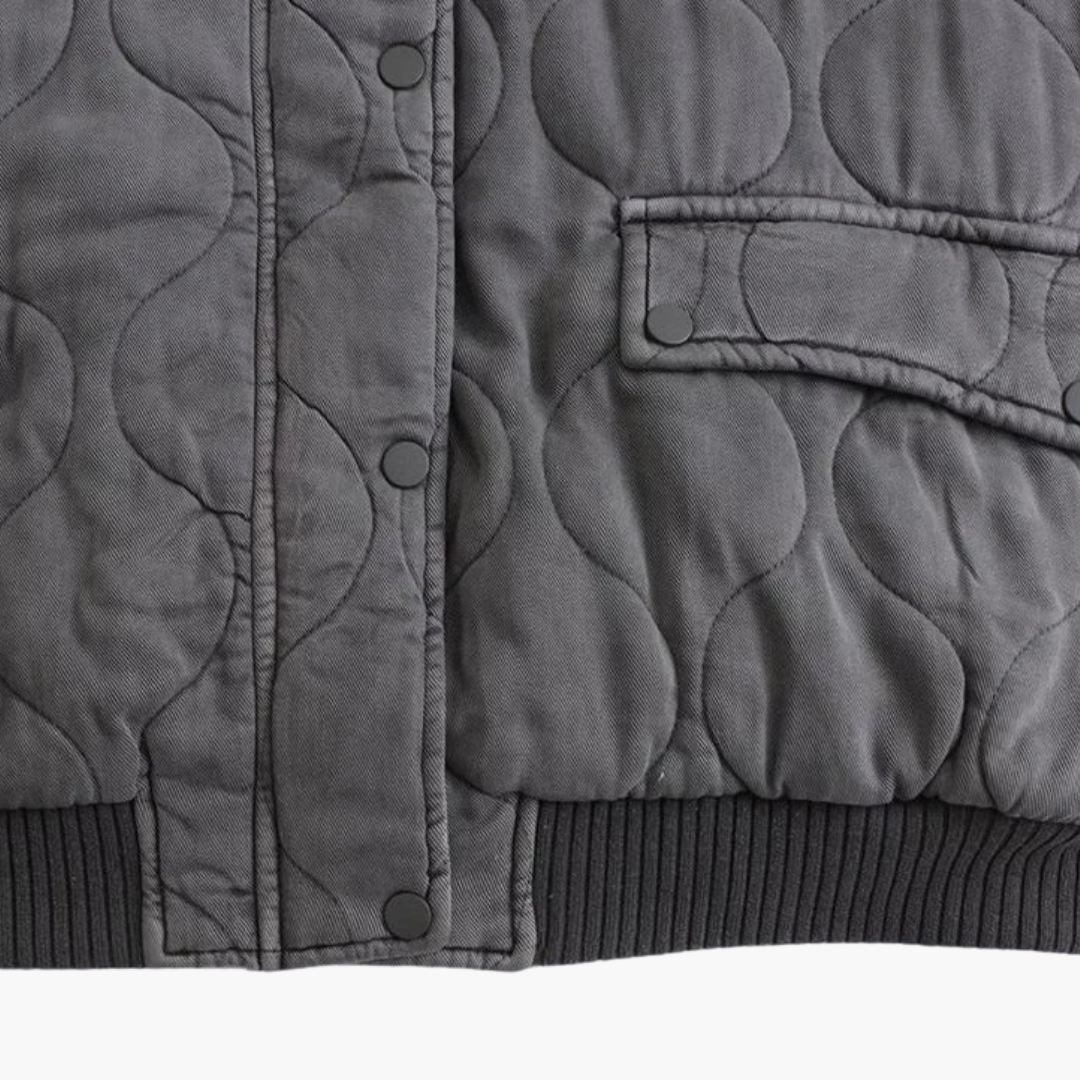 Gewatteerd Bomberjack met Drukknopen en Geribbelde Manchetten