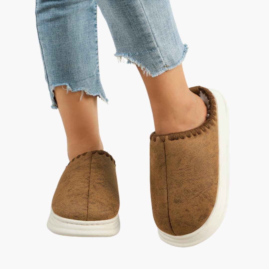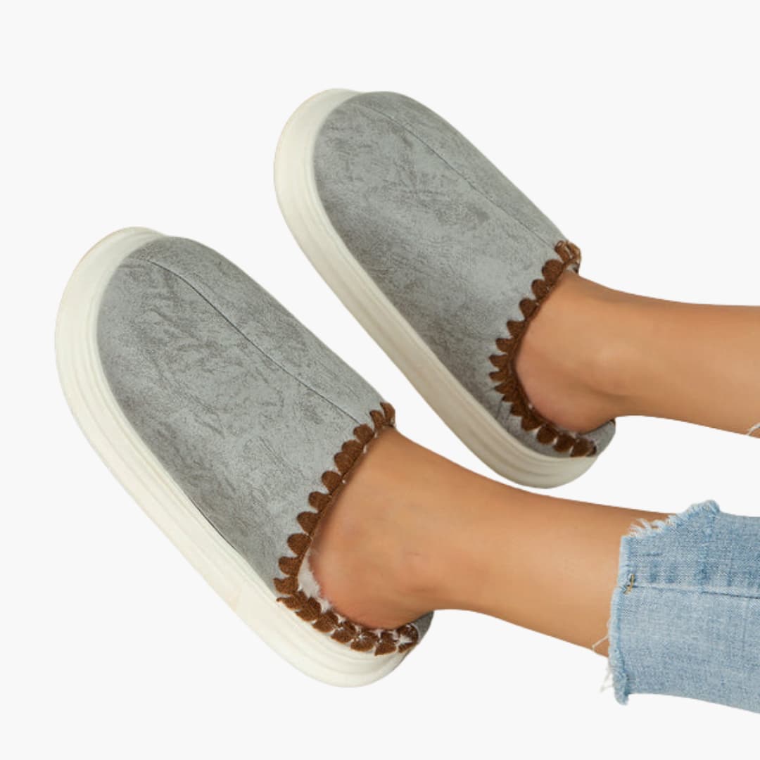 Slip-On Pantoffels met Pluche Voering en Decoratieve Stiksel