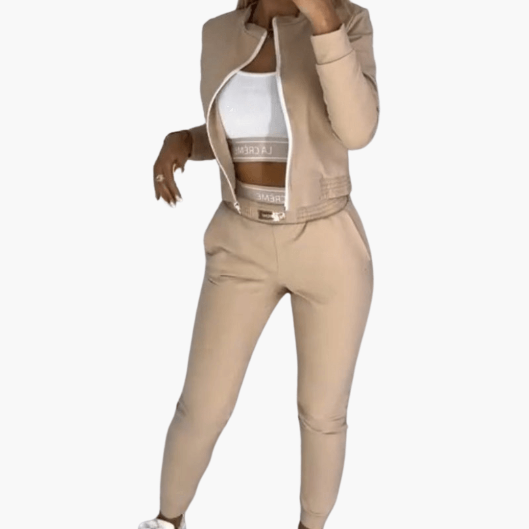 Trendy 3-delt zip treningsdress for kvinner – Komfortabel og moderne