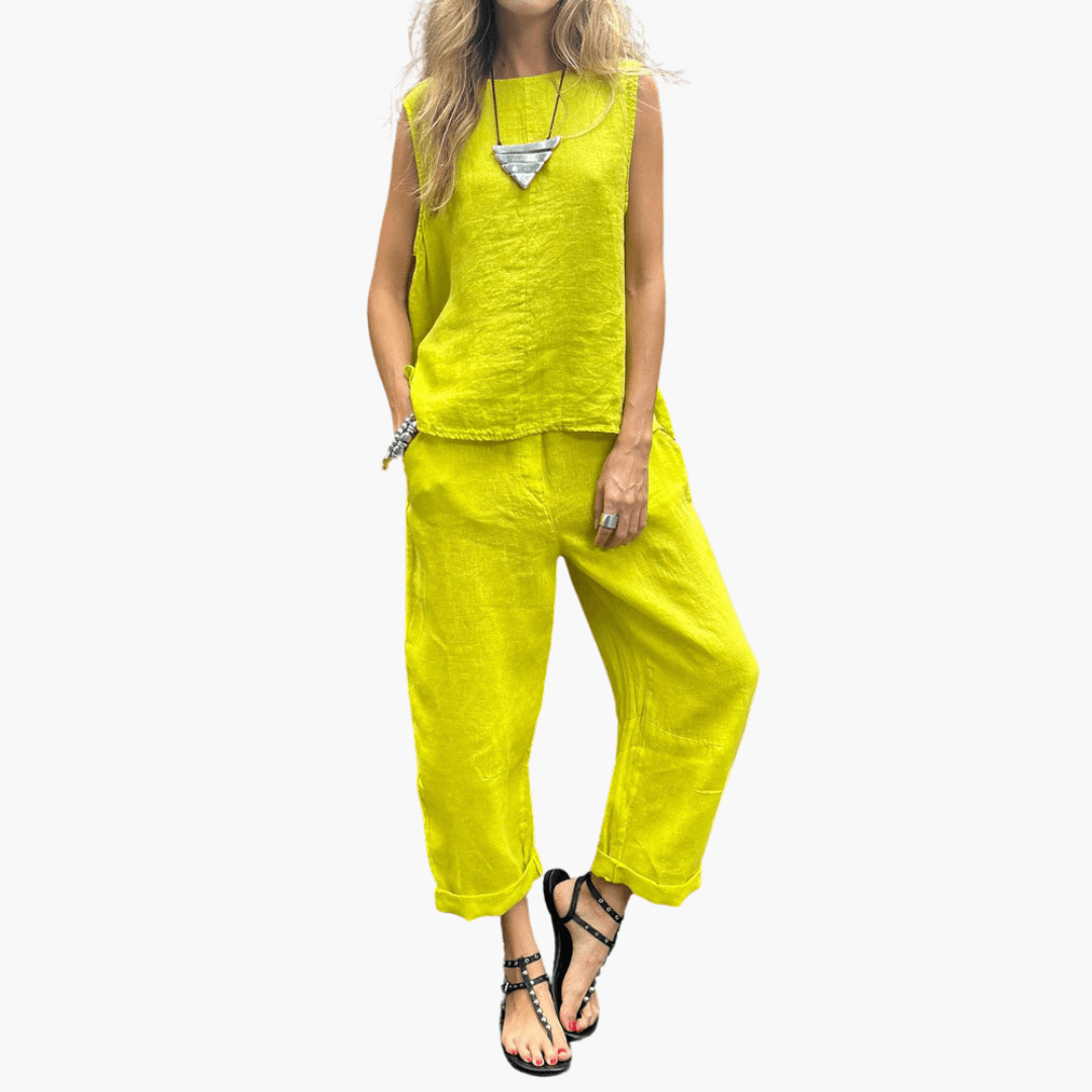 Casual linstoff to-delt sett for kvinner - topp og bukser