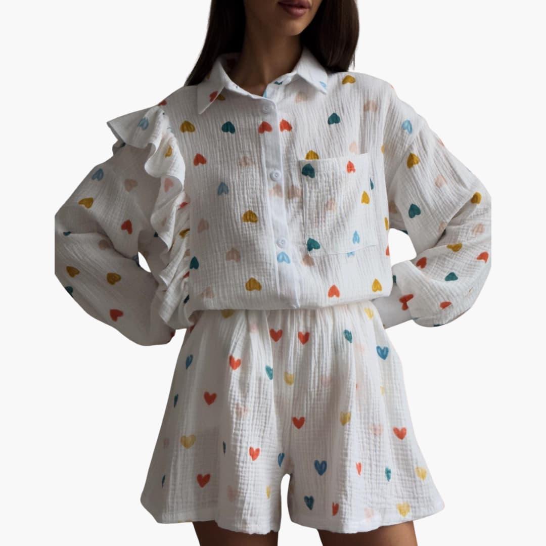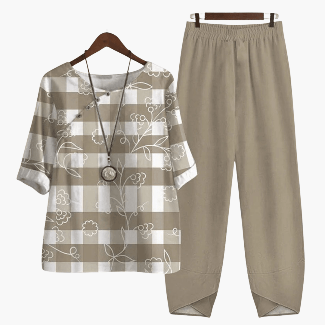 Zestaw damski z kwiatowym wzorem - top i spodnie na lato