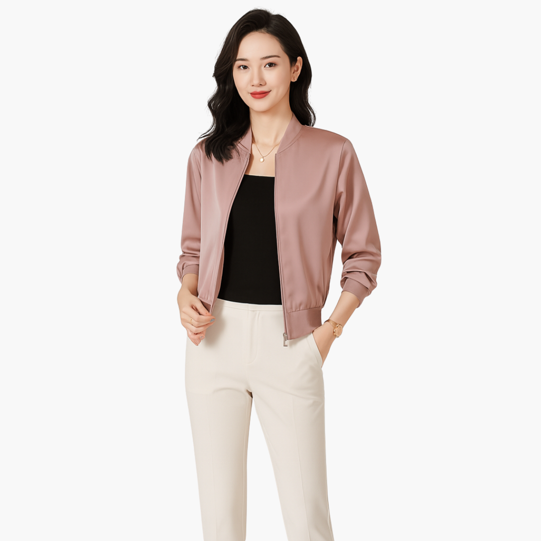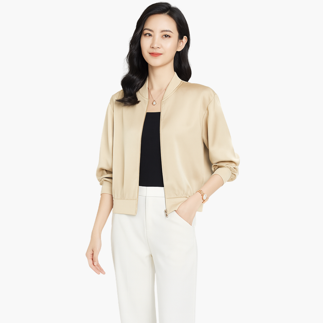 Damska satynowa kurtka bomberka z przednim zamkiem błyskawicznym